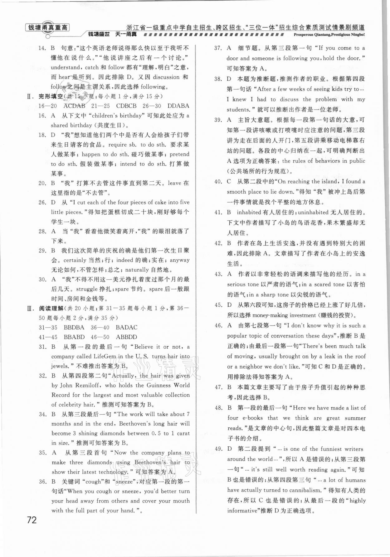 注:目前有些书本章节名称可能整理的还不是很完善,但都是按照顺序排列的,请同学们按照顺序仔细查找。练习册 2021年钱塘甬真重高英语中考 答案主要是用来给同学们做完题方便对答案用的,请勿直接抄袭。