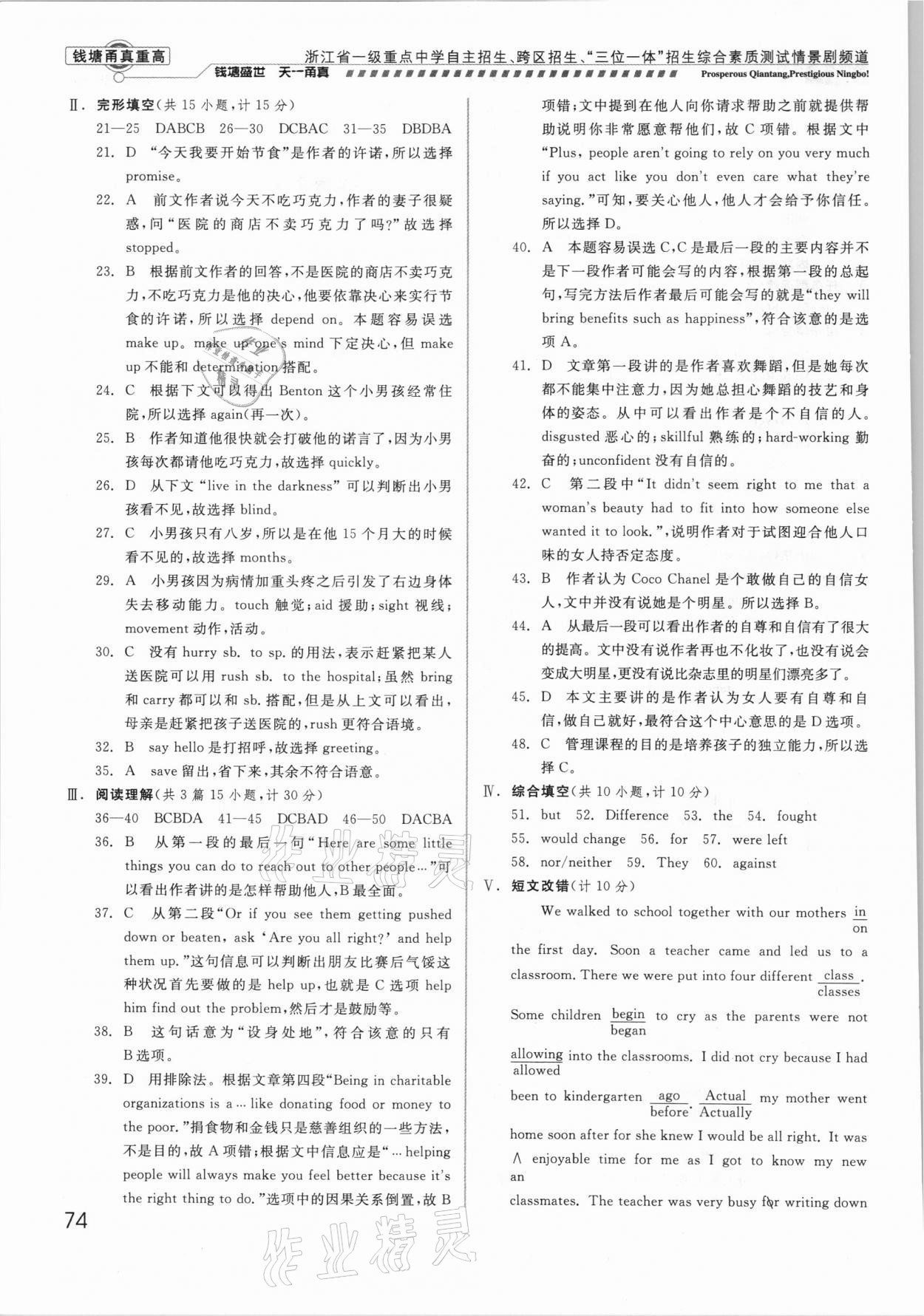 2021年钱塘甬真重高英语中考
