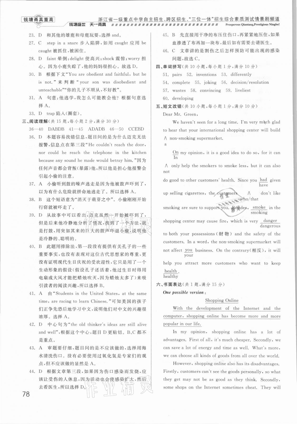 注:目前有些书本章节名称可能整理的还不是很完善,但都是按照顺序排列的,请同学们按照顺序仔细查找。练习册 2021年钱塘甬真重高英语中考 答案主要是用来给同学们做完题方便对答案用的,请勿直接抄袭。