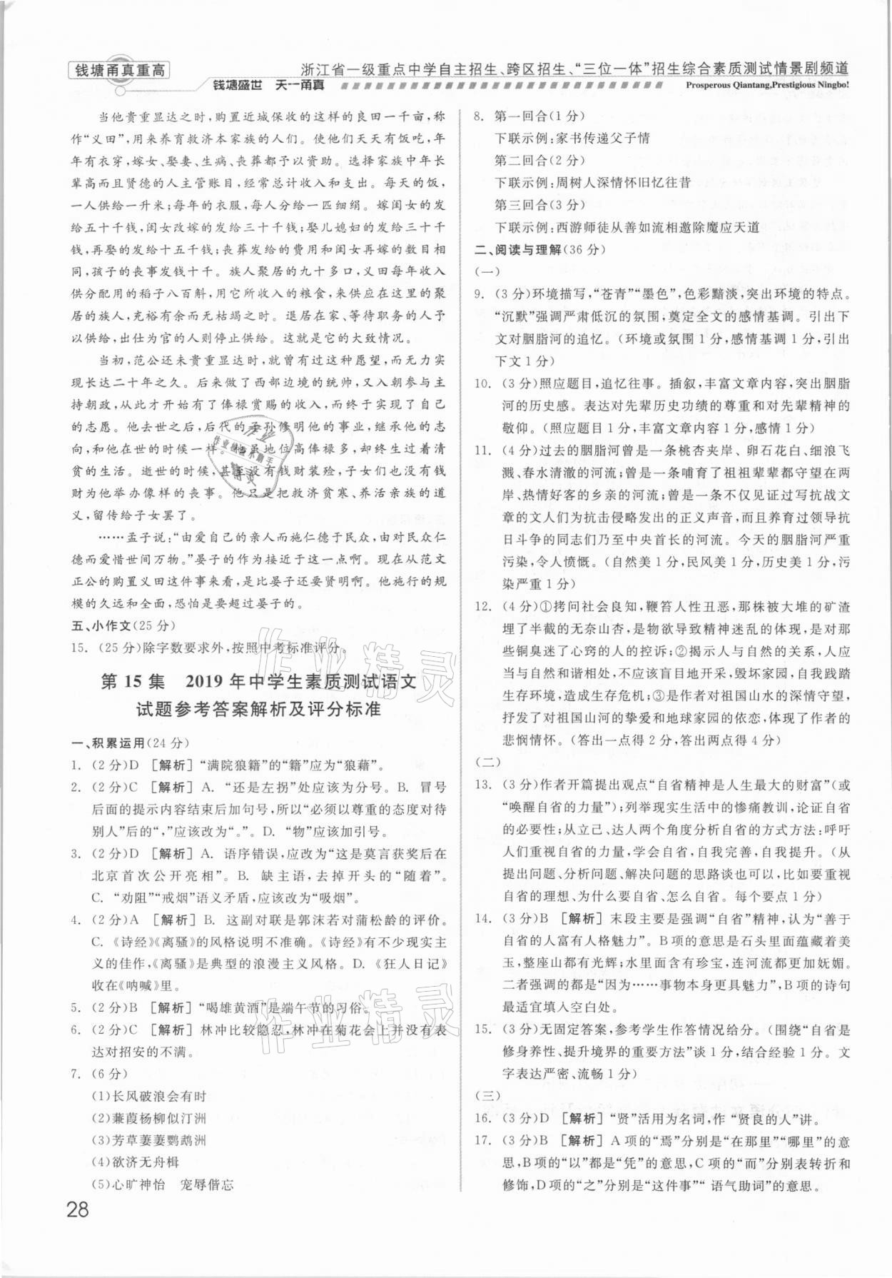 2021年钱塘甬真重高语文中考