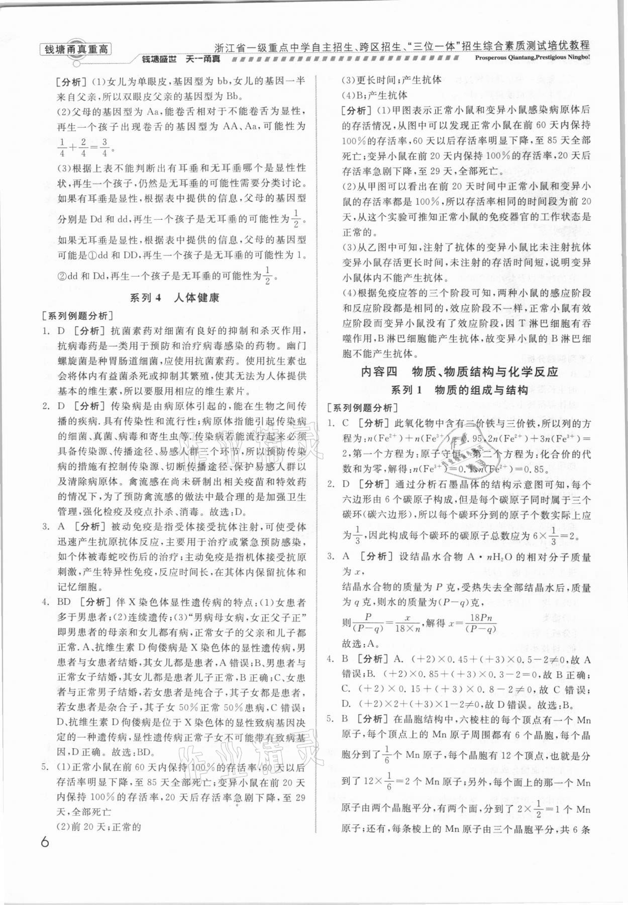 注:目前有些书本章节名称可能整理的还不是很完善,但都是按照顺序排列的,请同学们按照顺序仔细查找。练习册 2021年钱塘甬真重高科学中考 答案主要是用来给同学们做完题方便对答案用的,请勿直接抄袭。