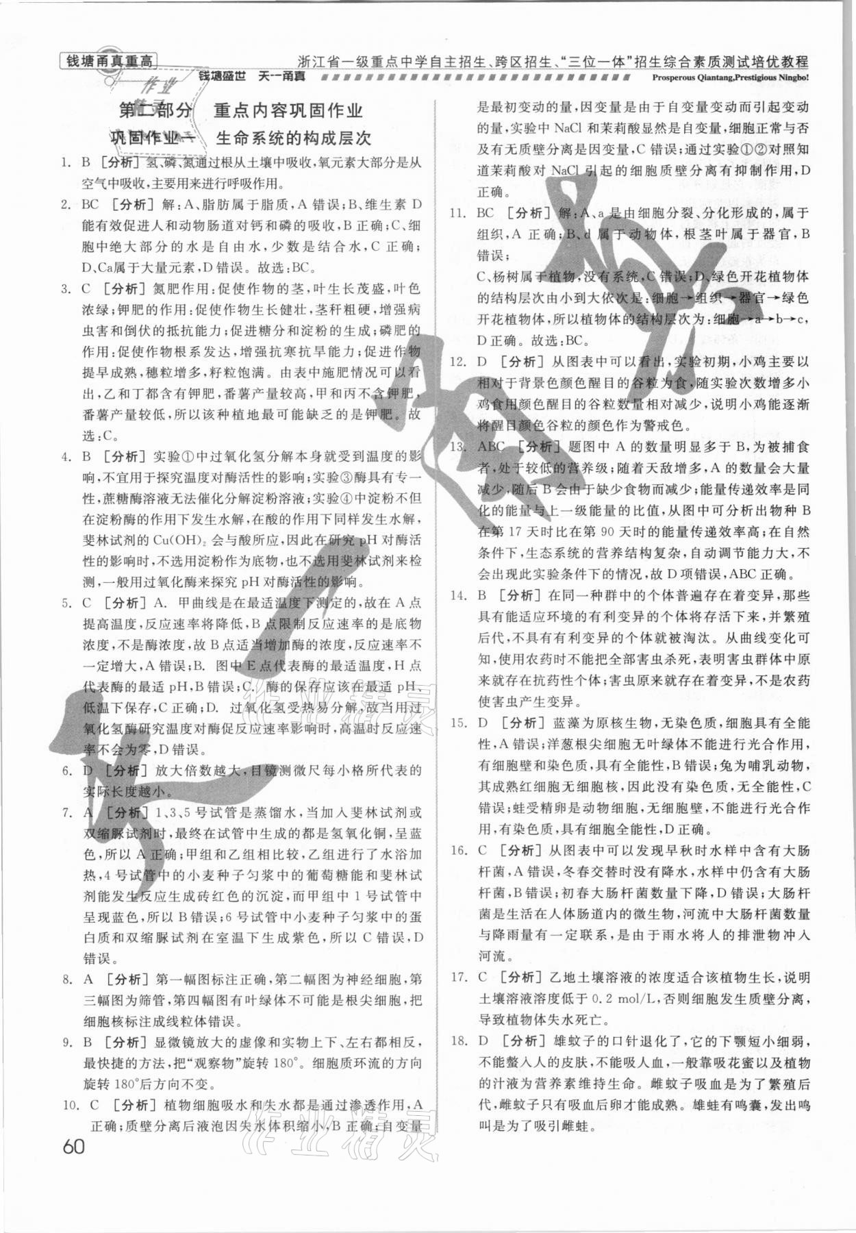 注:目前有些书本章节名称可能整理的还不是很完善,但都是按照顺序排列的,请同学们按照顺序仔细查找。练习册 2021年钱塘甬真重高科学中考 答案主要是用来给同学们做完题方便对答案用的,请勿直接抄袭。