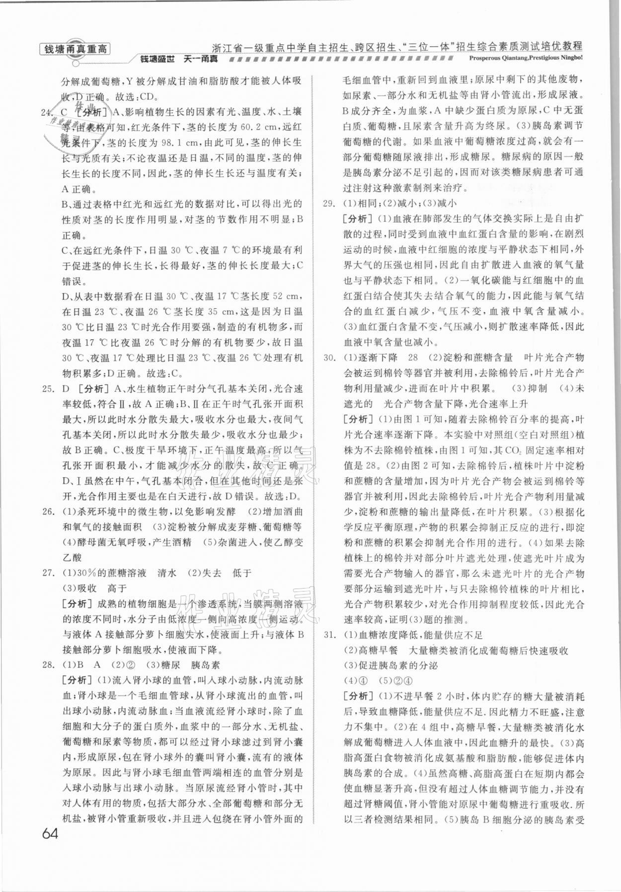注:目前有些书本章节名称可能整理的还不是很完善,但都是按照顺序排列的,请同学们按照顺序仔细查找。练习册 2021年钱塘甬真重高科学中考 答案主要是用来给同学们做完题方便对答案用的,请勿直接抄袭。