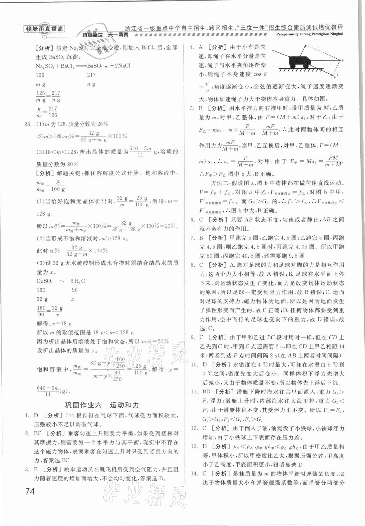 注:目前有些书本章节名称可能整理的还不是很完善,但都是按照顺序排列的,请同学们按照顺序仔细查找。练习册 2021年钱塘甬真重高科学中考 答案主要是用来给同学们做完题方便对答案用的,请勿直接抄袭。