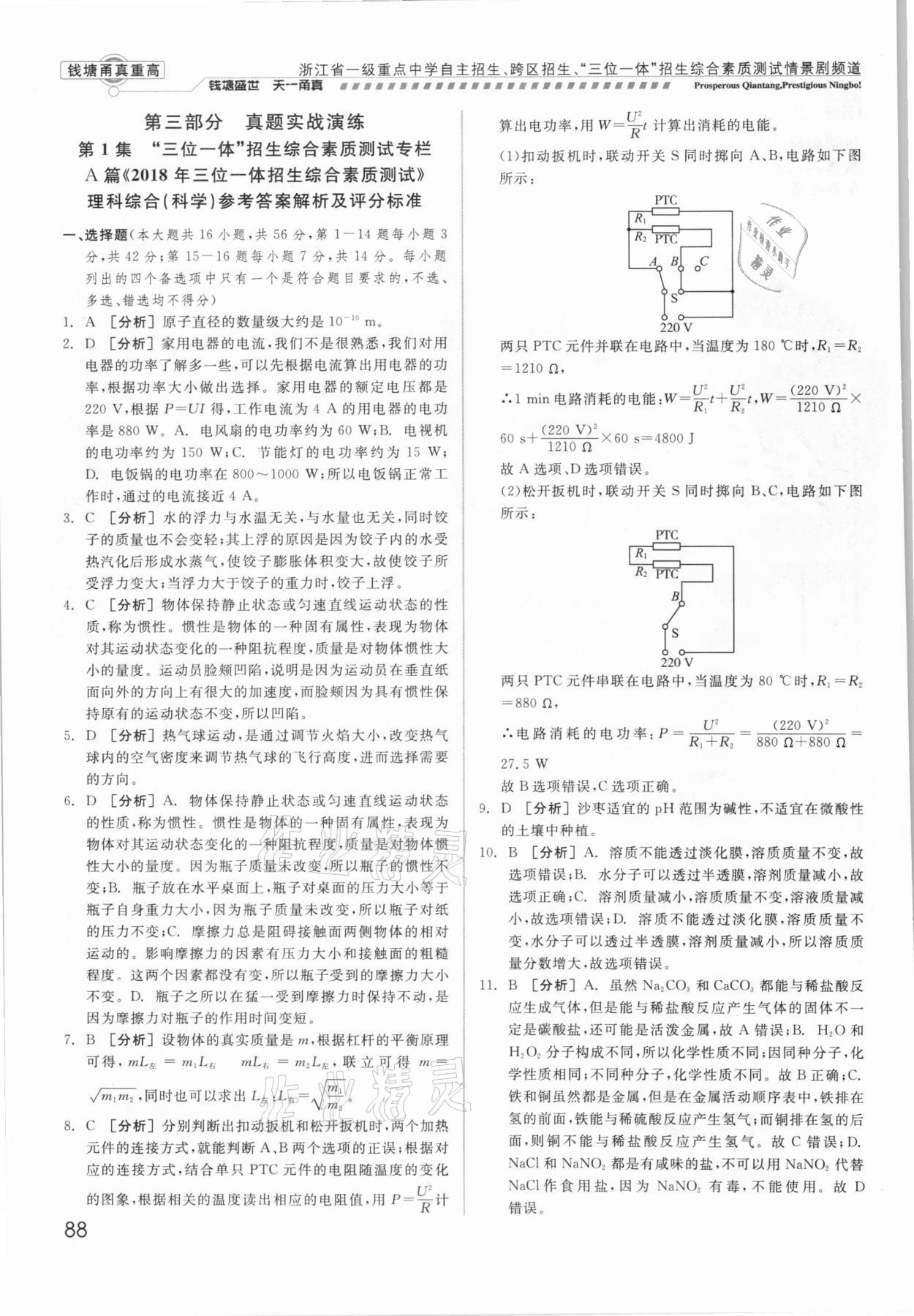 注:目前有些书本章节名称可能整理的还不是很完善,但都是按照顺序排列的,请同学们按照顺序仔细查找。练习册 2021年钱塘甬真重高科学中考 答案主要是用来给同学们做完题方便对答案用的,请勿直接抄袭。