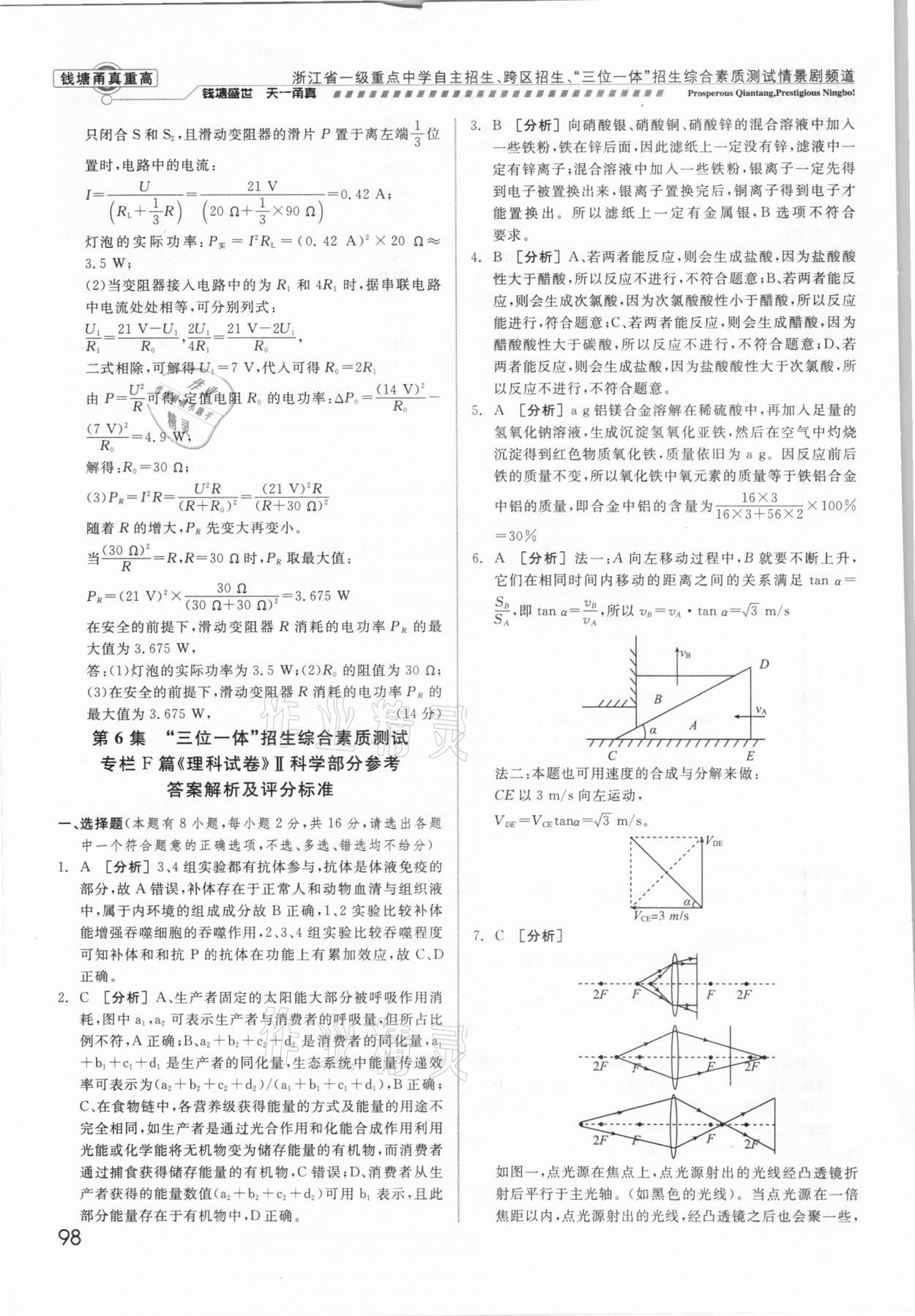 注:目前有些书本章节名称可能整理的还不是很完善,但都是按照顺序排列的,请同学们按照顺序仔细查找。练习册 2021年钱塘甬真重高科学中考 答案主要是用来给同学们做完题方便对答案用的,请勿直接抄袭。