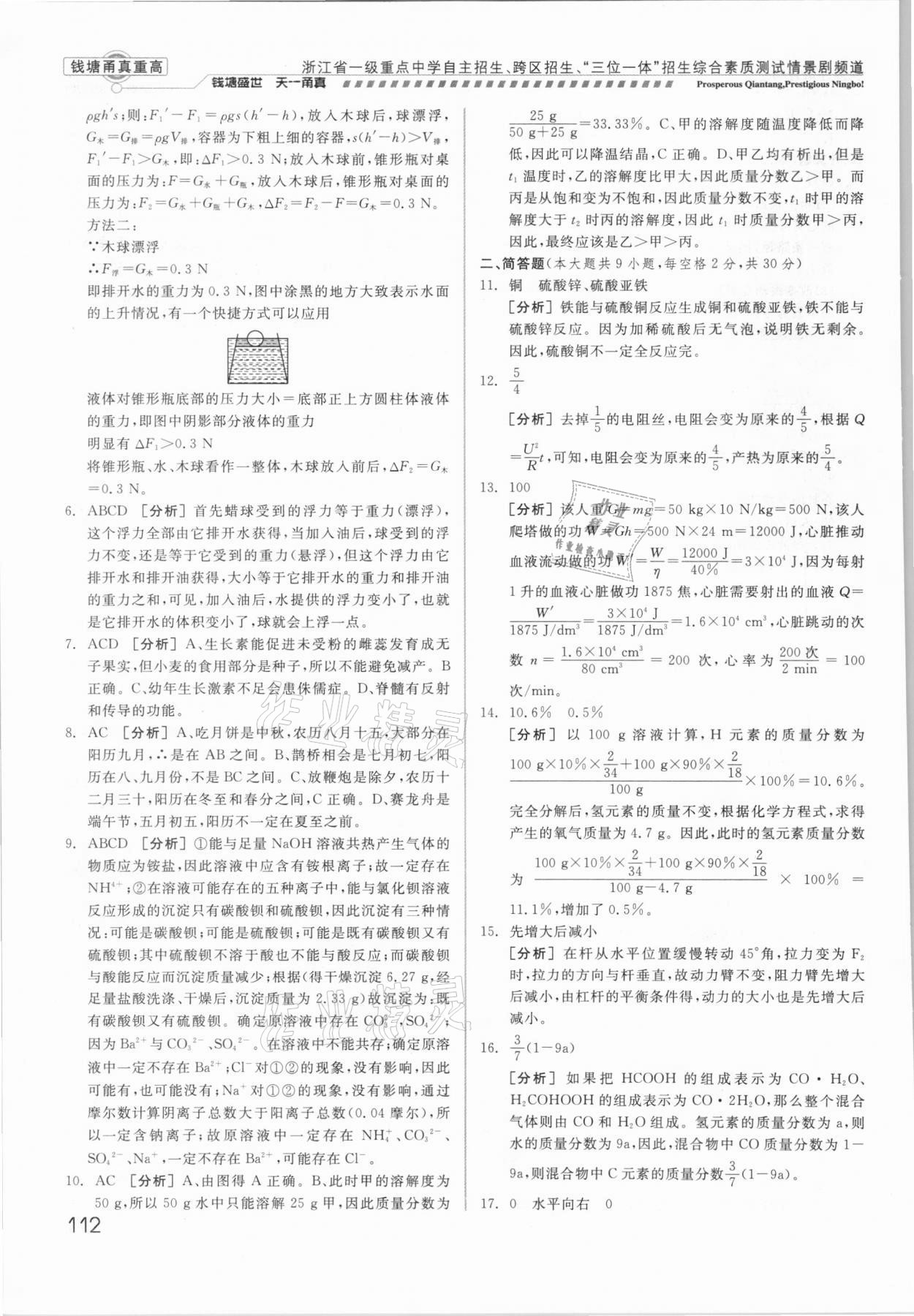 2021年钱塘甬真重高科学中考