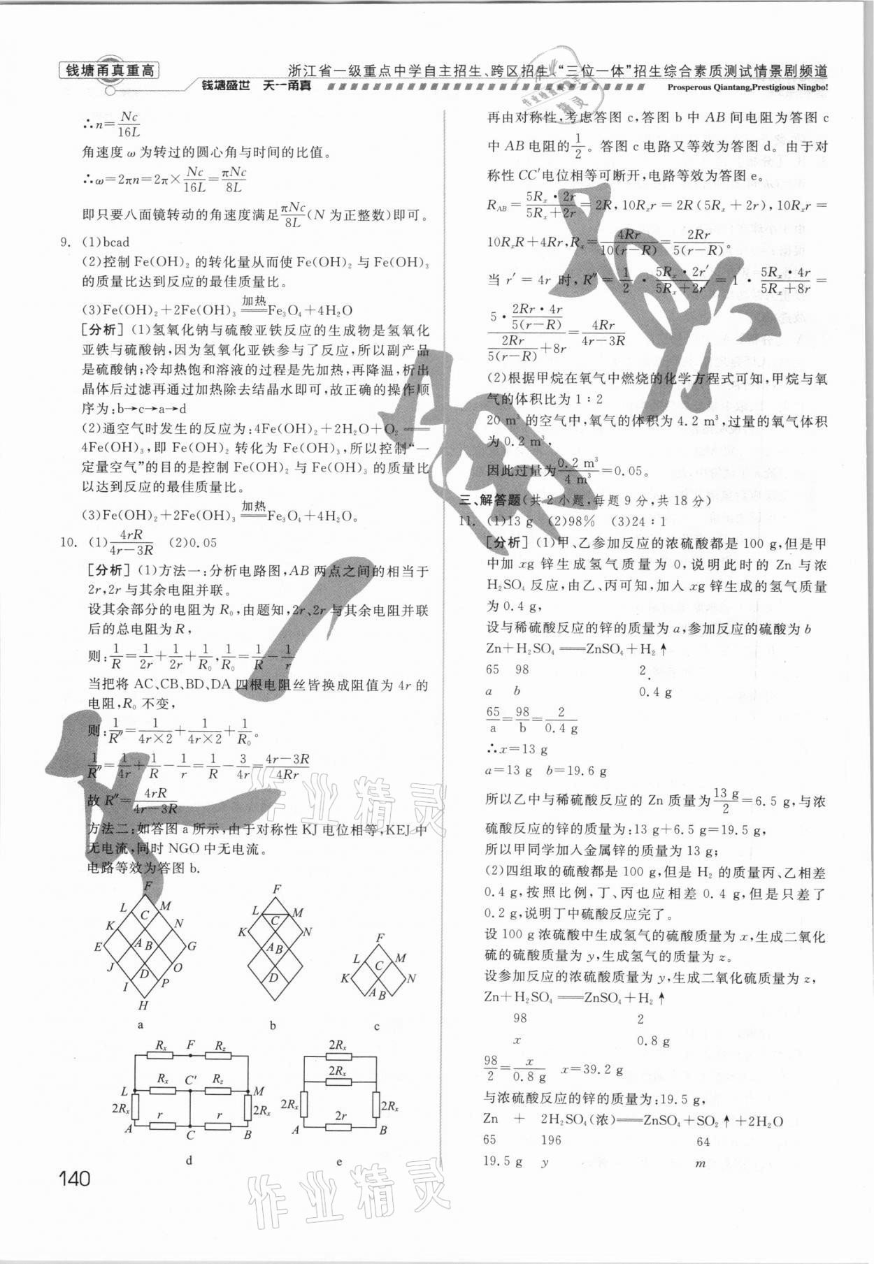 注:目前有些书本章节名称可能整理的还不是很完善,但都是按照顺序排列的,请同学们按照顺序仔细查找。练习册 2021年钱塘甬真重高科学中考 答案主要是用来给同学们做完题方便对答案用的,请勿直接抄袭。