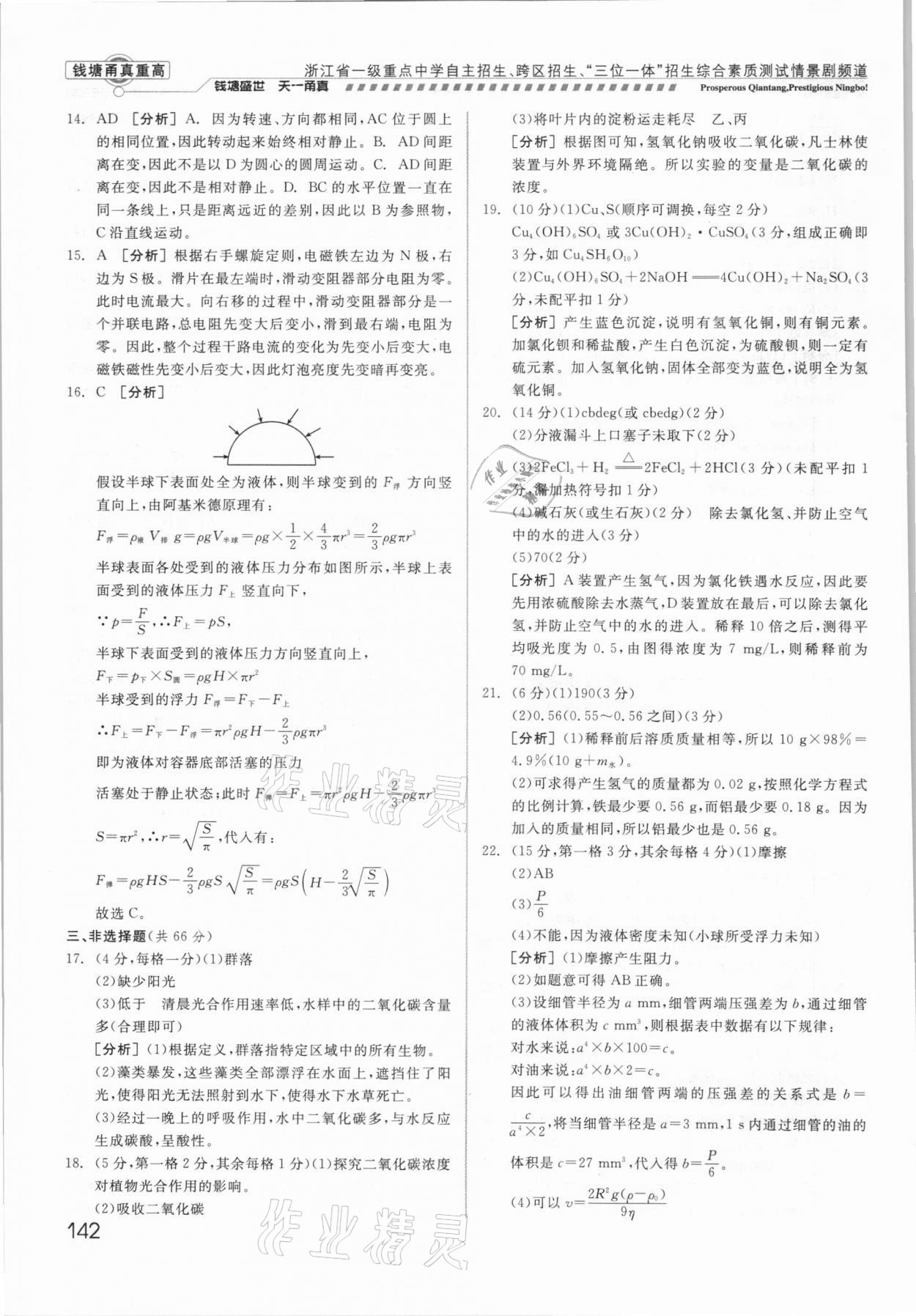 注:目前有些书本章节名称可能整理的还不是很完善,但都是按照顺序排列的,请同学们按照顺序仔细查找。练习册 2021年钱塘甬真重高科学中考 答案主要是用来给同学们做完题方便对答案用的,请勿直接抄袭。
