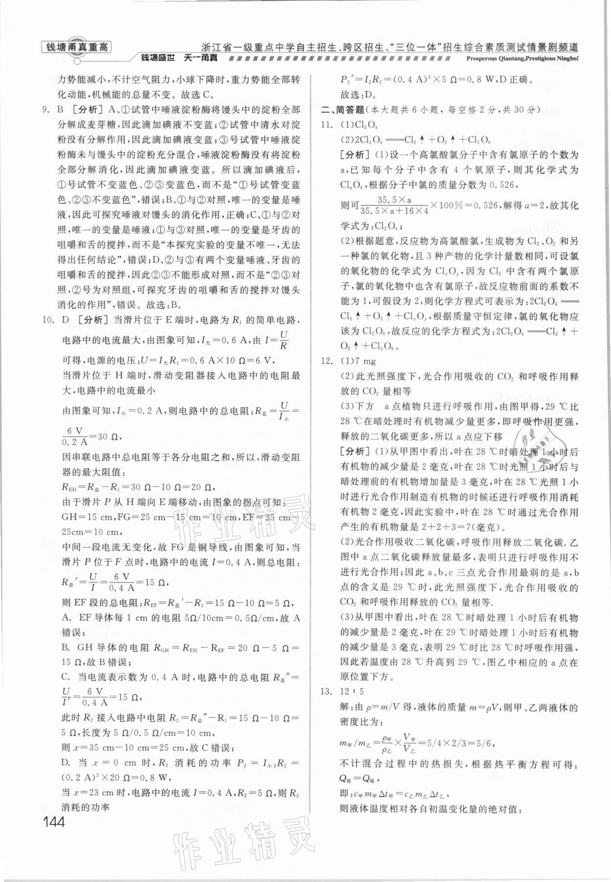 注:目前有些书本章节名称可能整理的还不是很完善,但都是按照顺序排列的,请同学们按照顺序仔细查找。练习册 2021年钱塘甬真重高科学中考 答案主要是用来给同学们做完题方便对答案用的,请勿直接抄袭。