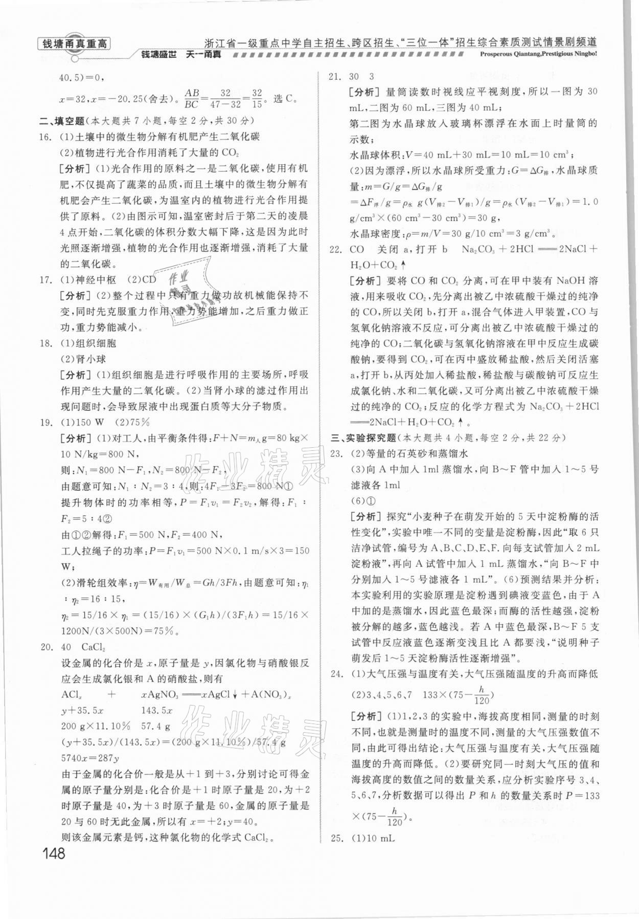 注:目前有些书本章节名称可能整理的还不是很完善,但都是按照顺序排列的,请同学们按照顺序仔细查找。练习册 2021年钱塘甬真重高科学中考 答案主要是用来给同学们做完题方便对答案用的,请勿直接抄袭。