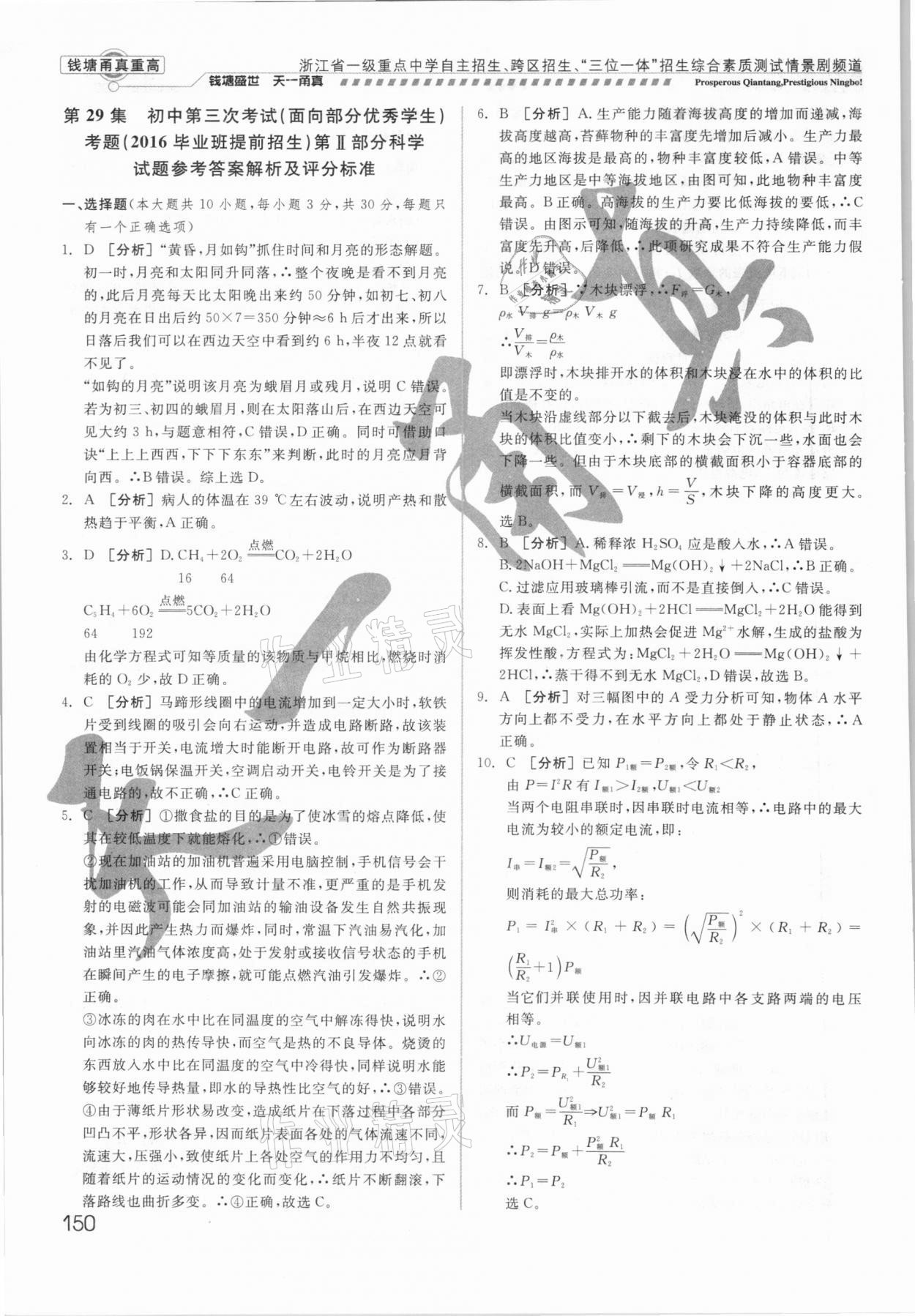 注:目前有些书本章节名称可能整理的还不是很完善,但都是按照顺序排列的,请同学们按照顺序仔细查找。练习册 2021年钱塘甬真重高科学中考 答案主要是用来给同学们做完题方便对答案用的,请勿直接抄袭。