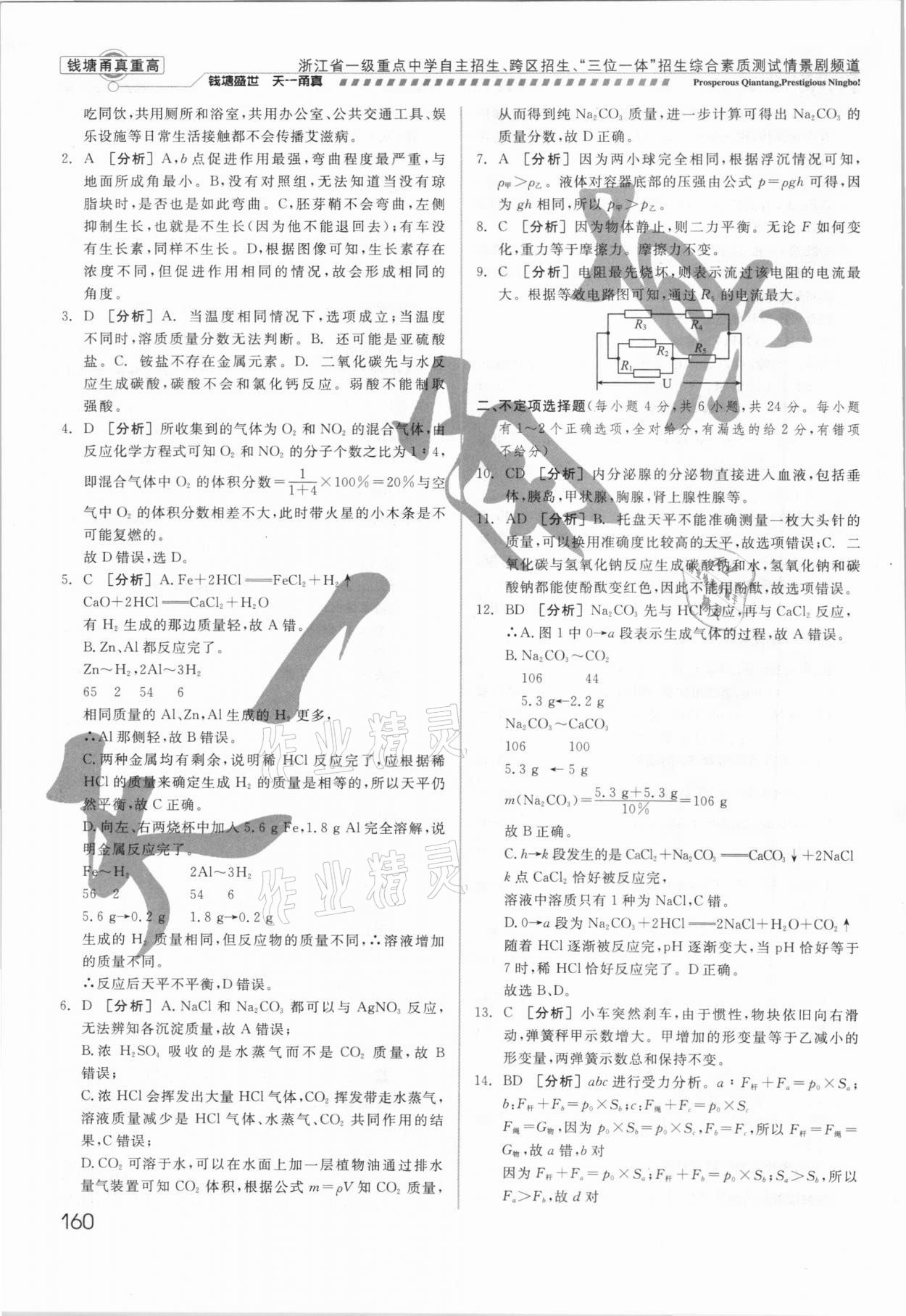 注:目前有些书本章节名称可能整理的还不是很完善,但都是按照顺序排列的,请同学们按照顺序仔细查找。练习册 2021年钱塘甬真重高科学中考 答案主要是用来给同学们做完题方便对答案用的,请勿直接抄袭。
