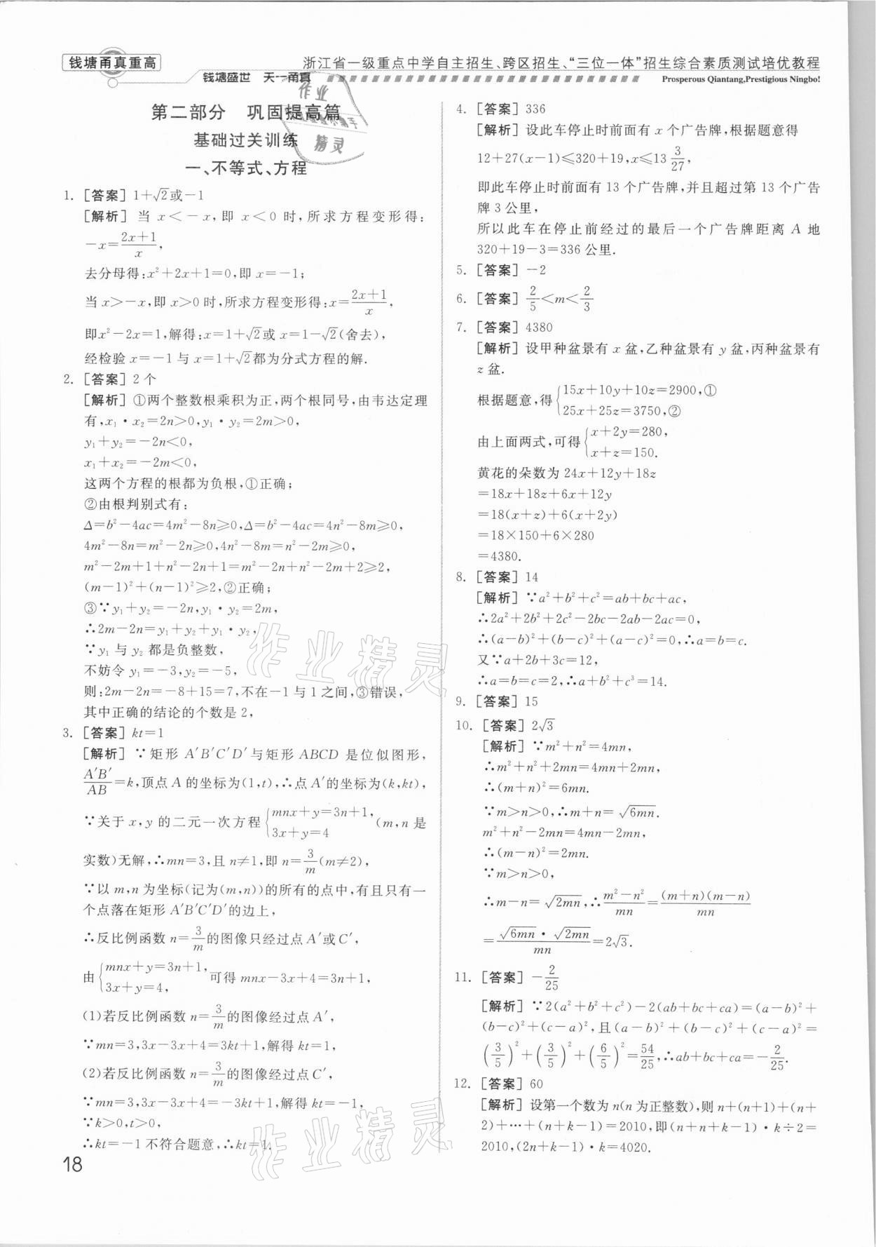 注:目前有些书本章节名称可能整理的还不是很完善,但都是按照顺序排列的,请同学们按照顺序仔细查找。练习册 2021年钱塘甬真重高数学中考 答案主要是用来给同学们做完题方便对答案用的,请勿直接抄袭。