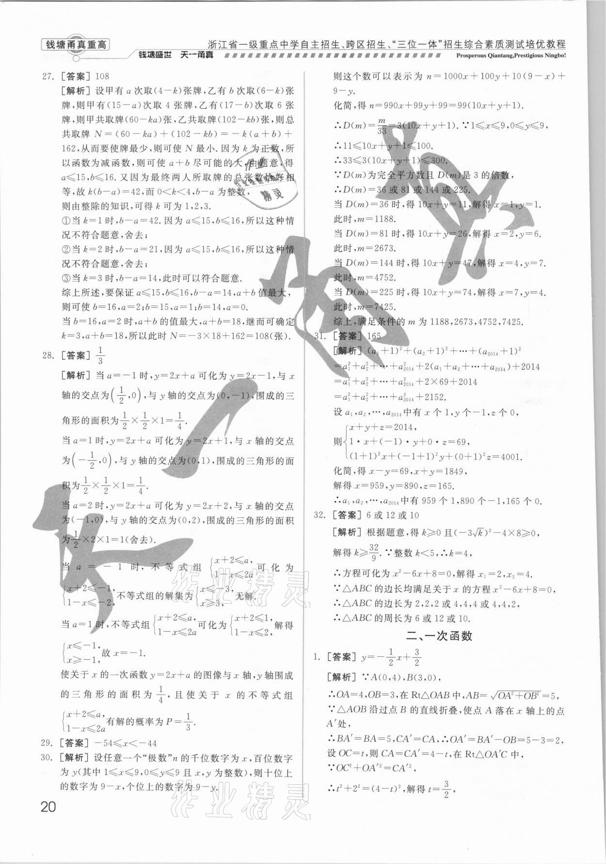 注:目前有些书本章节名称可能整理的还不是很完善,但都是按照顺序排列的,请同学们按照顺序仔细查找。练习册 2021年钱塘甬真重高数学中考 答案主要是用来给同学们做完题方便对答案用的,请勿直接抄袭。