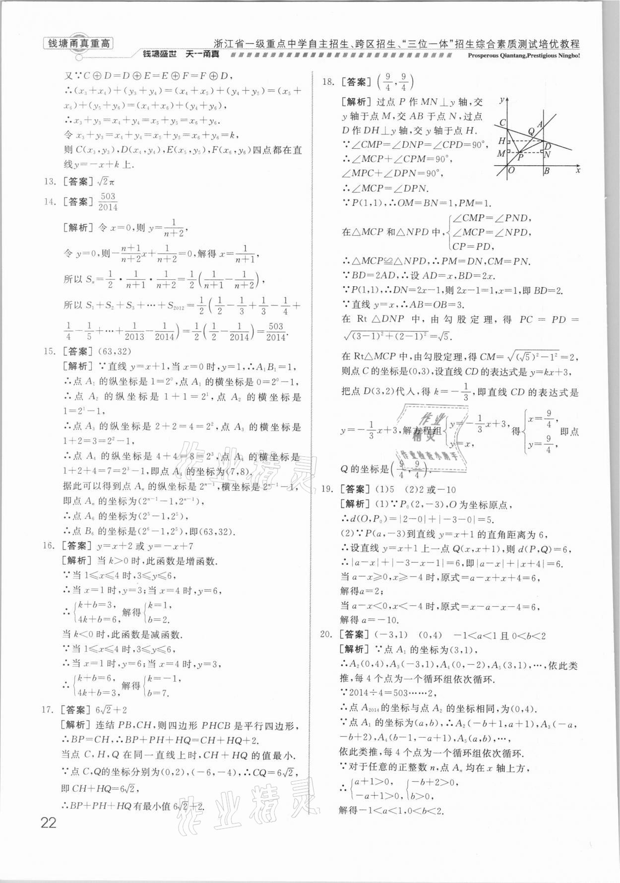 注:目前有些书本章节名称可能整理的还不是很完善,但都是按照顺序排列的,请同学们按照顺序仔细查找。练习册 2021年钱塘甬真重高数学中考 答案主要是用来给同学们做完题方便对答案用的,请勿直接抄袭。