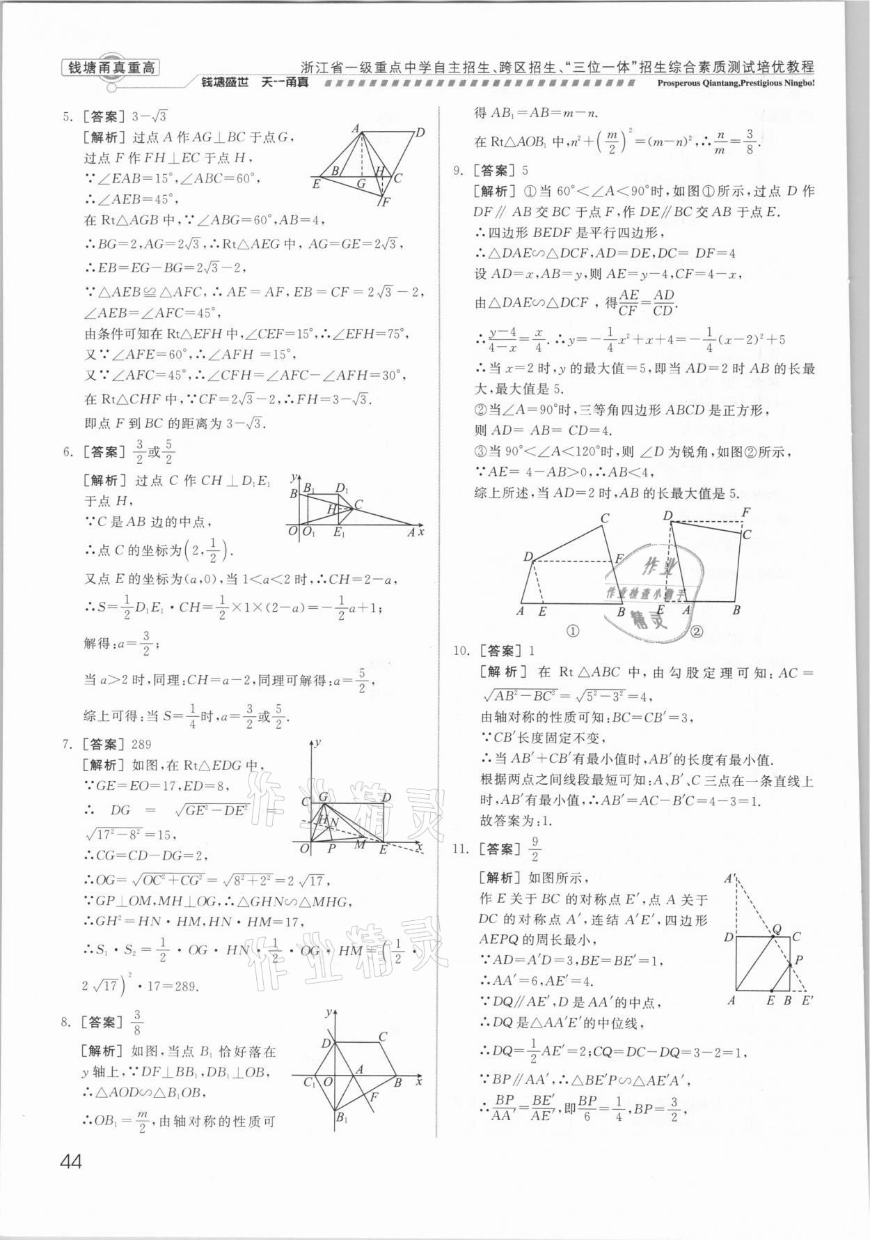 注:目前有些书本章节名称可能整理的还不是很完善,但都是按照顺序排列的,请同学们按照顺序仔细查找。练习册 2021年钱塘甬真重高数学中考 答案主要是用来给同学们做完题方便对答案用的,请勿直接抄袭。
