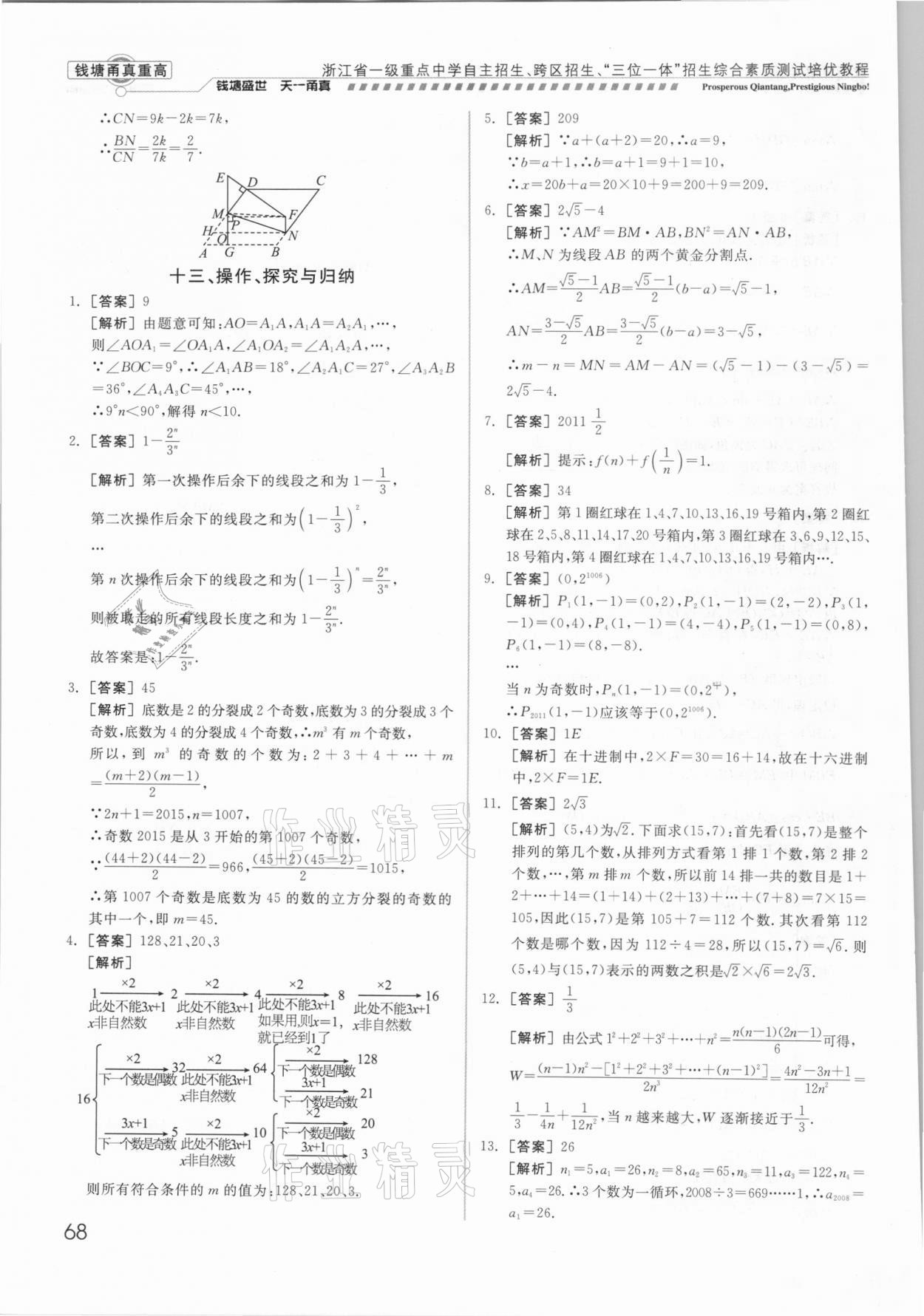 注:目前有些书本章节名称可能整理的还不是很完善,但都是按照顺序排列的,请同学们按照顺序仔细查找。练习册 2021年钱塘甬真重高数学中考 答案主要是用来给同学们做完题方便对答案用的,请勿直接抄袭。