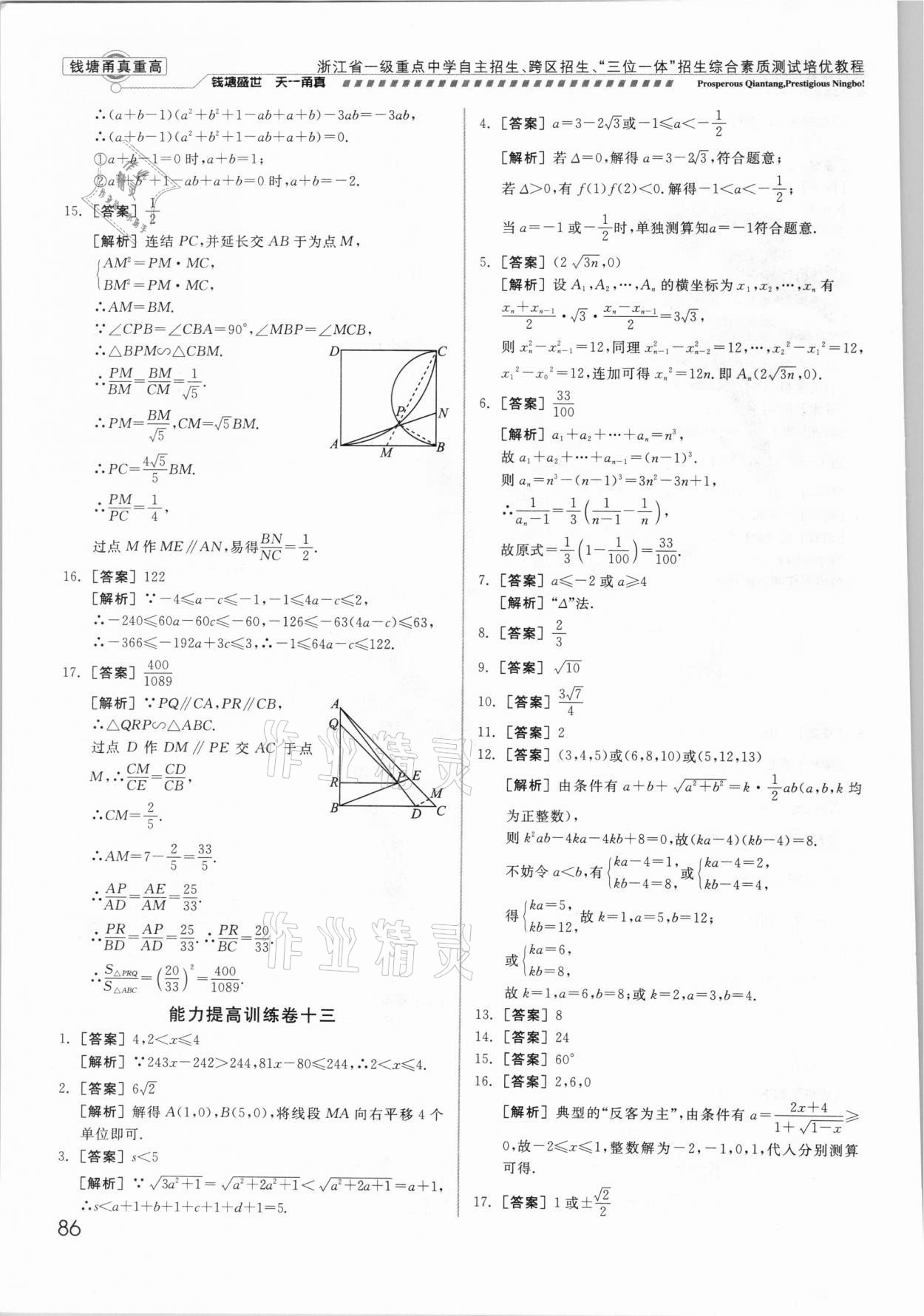 注:目前有些书本章节名称可能整理的还不是很完善,但都是按照顺序排列的,请同学们按照顺序仔细查找。练习册 2021年钱塘甬真重高数学中考 答案主要是用来给同学们做完题方便对答案用的,请勿直接抄袭。