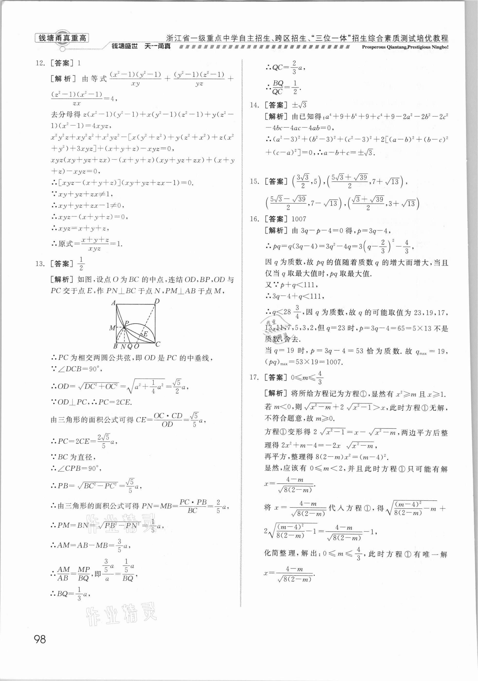 注:目前有些书本章节名称可能整理的还不是很完善,但都是按照顺序排列的,请同学们按照顺序仔细查找。练习册 2021年钱塘甬真重高数学中考 答案主要是用来给同学们做完题方便对答案用的,请勿直接抄袭。