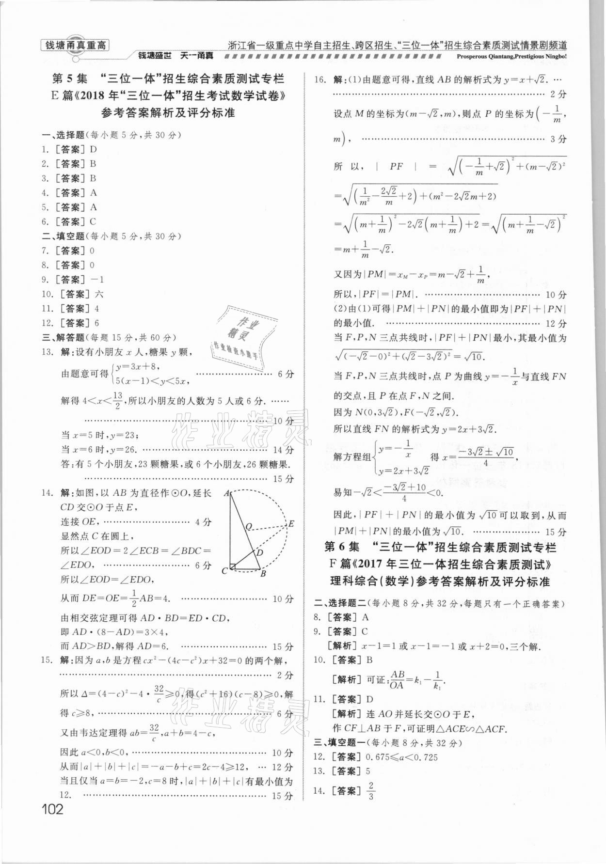 注:目前有些书本章节名称可能整理的还不是很完善,但都是按照顺序排列的,请同学们按照顺序仔细查找。练习册 2021年钱塘甬真重高数学中考 答案主要是用来给同学们做完题方便对答案用的,请勿直接抄袭。