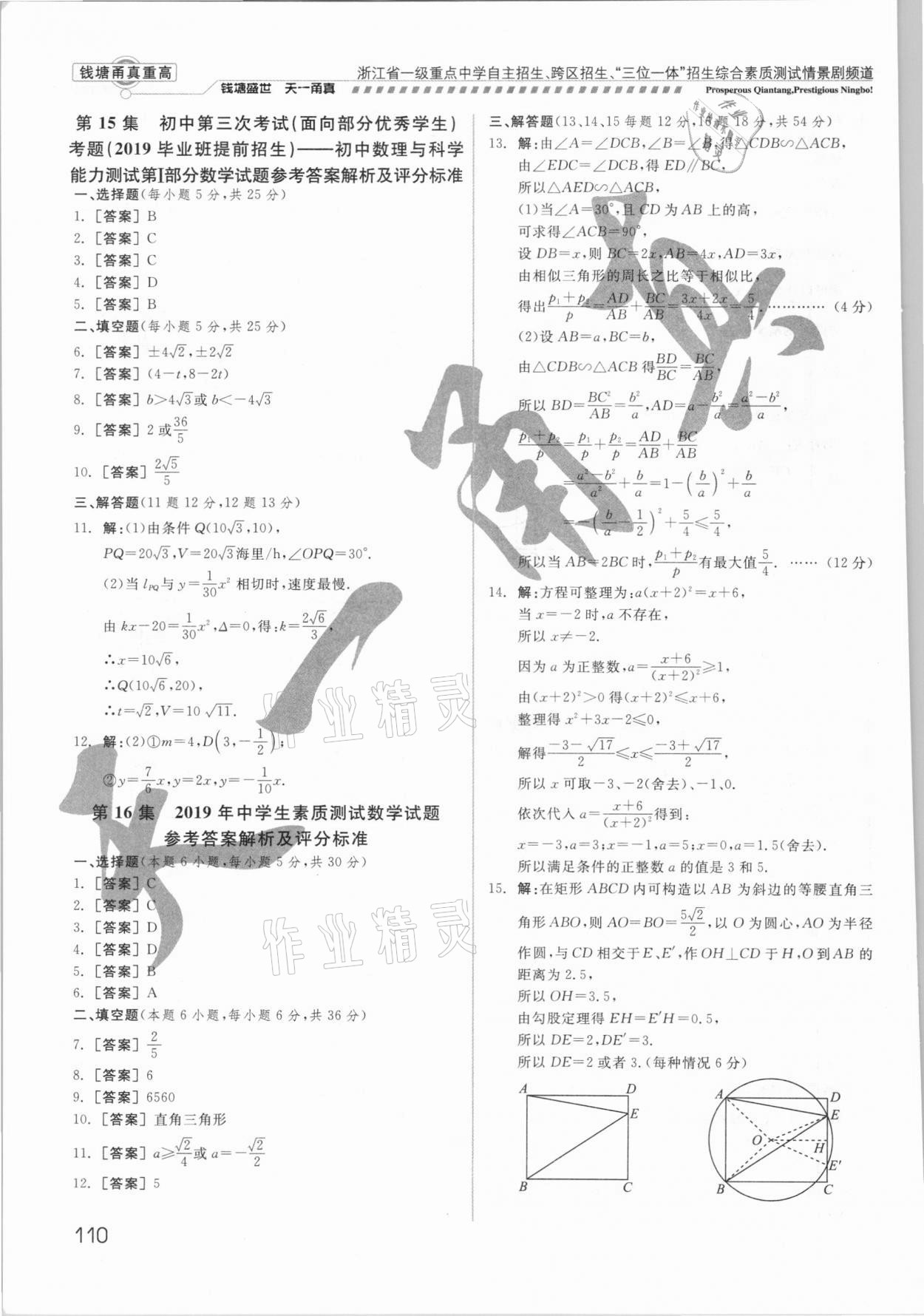 注:目前有些书本章节名称可能整理的还不是很完善,但都是按照顺序排列的,请同学们按照顺序仔细查找。练习册 2021年钱塘甬真重高数学中考 答案主要是用来给同学们做完题方便对答案用的,请勿直接抄袭。