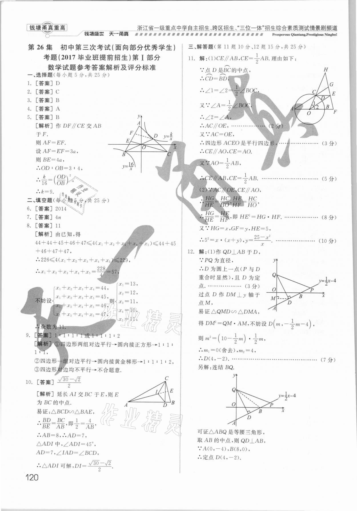 注:目前有些书本章节名称可能整理的还不是很完善,但都是按照顺序排列的,请同学们按照顺序仔细查找。练习册 2021年钱塘甬真重高数学中考 答案主要是用来给同学们做完题方便对答案用的,请勿直接抄袭。