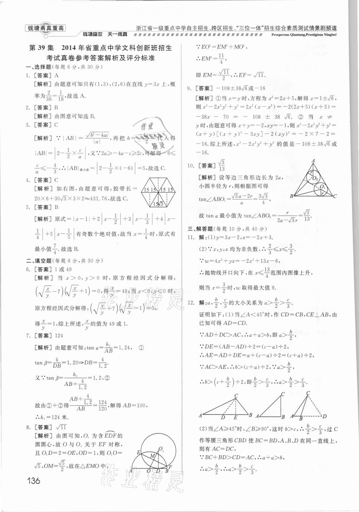 注:目前有些书本章节名称可能整理的还不是很完善,但都是按照顺序排列的,请同学们按照顺序仔细查找。练习册 2021年钱塘甬真重高数学中考 答案主要是用来给同学们做完题方便对答案用的,请勿直接抄袭。
