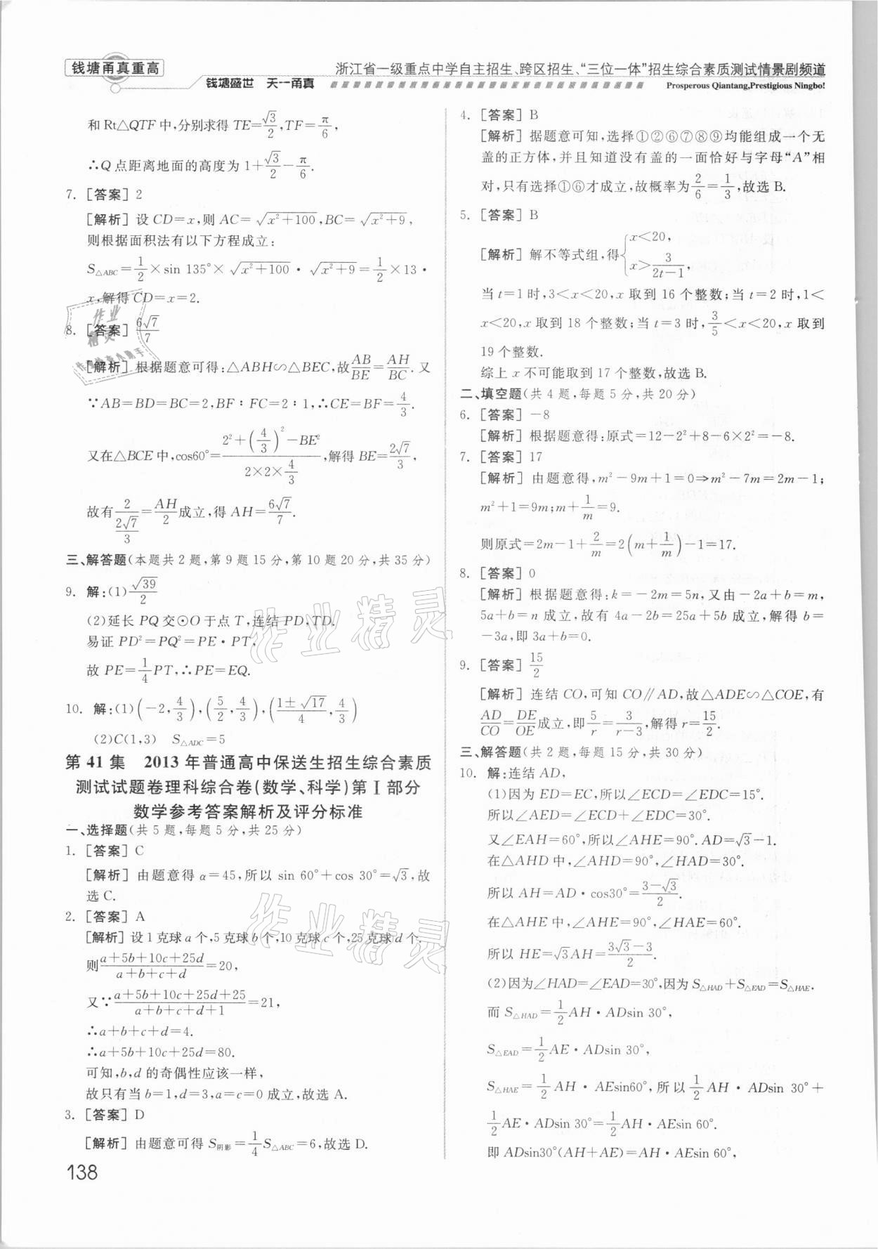 注:目前有些书本章节名称可能整理的还不是很完善,但都是按照顺序排列的,请同学们按照顺序仔细查找。练习册 2021年钱塘甬真重高数学中考 答案主要是用来给同学们做完题方便对答案用的,请勿直接抄袭。