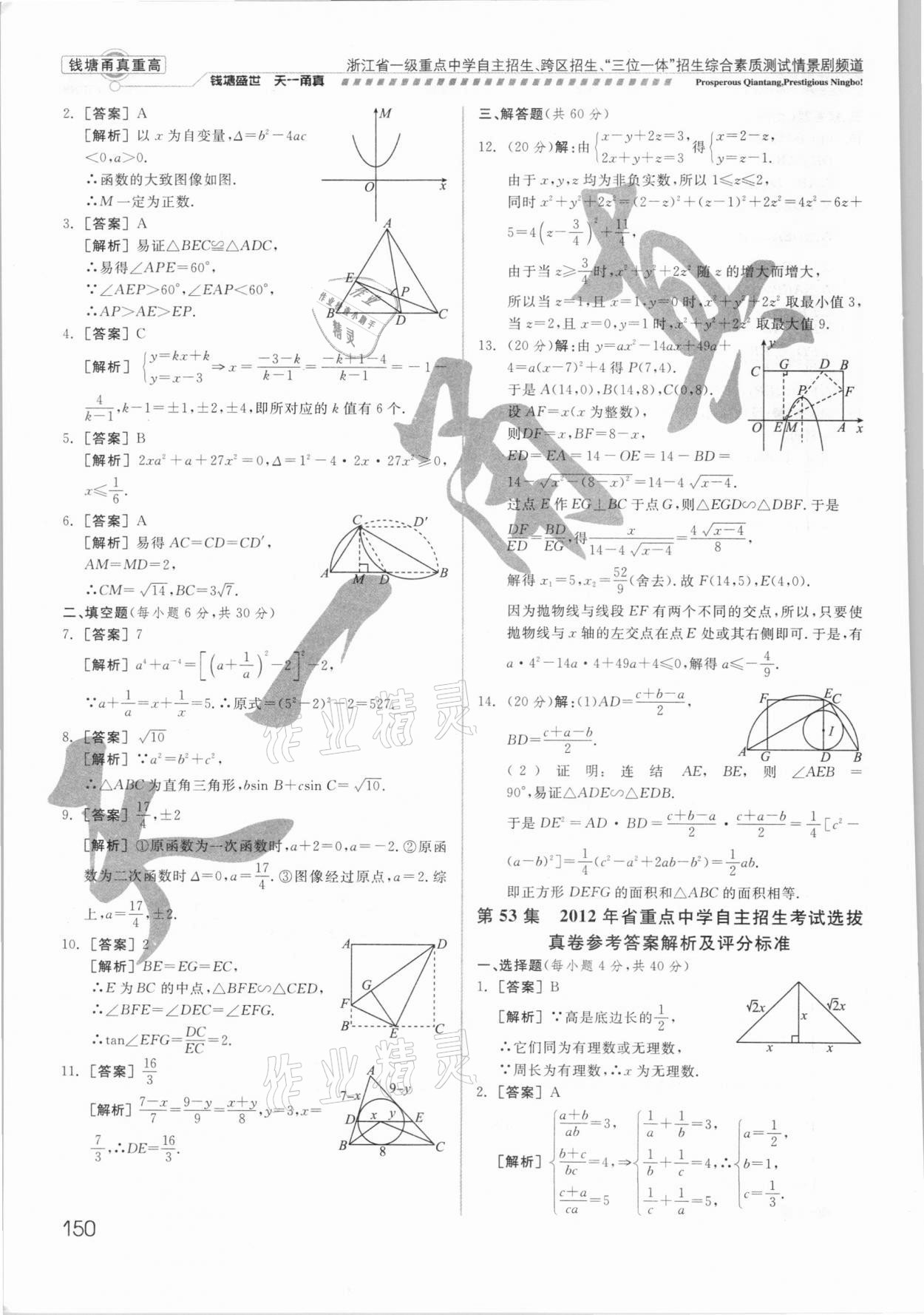 注:目前有些书本章节名称可能整理的还不是很完善,但都是按照顺序排列的,请同学们按照顺序仔细查找。练习册 2021年钱塘甬真重高数学中考 答案主要是用来给同学们做完题方便对答案用的,请勿直接抄袭。