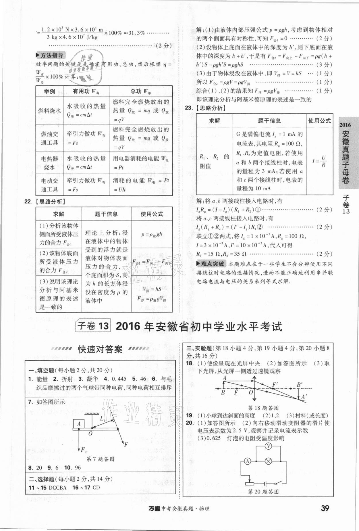 注:目前有些书本章节名称可能整理的还不是很完善,但都是按照顺序排列的,请同学们按照顺序仔细查找。练习册 2021年万唯中考安徽真题物理 答案主要是用来给同学们做完题方便对答案用的,请勿直接抄袭。