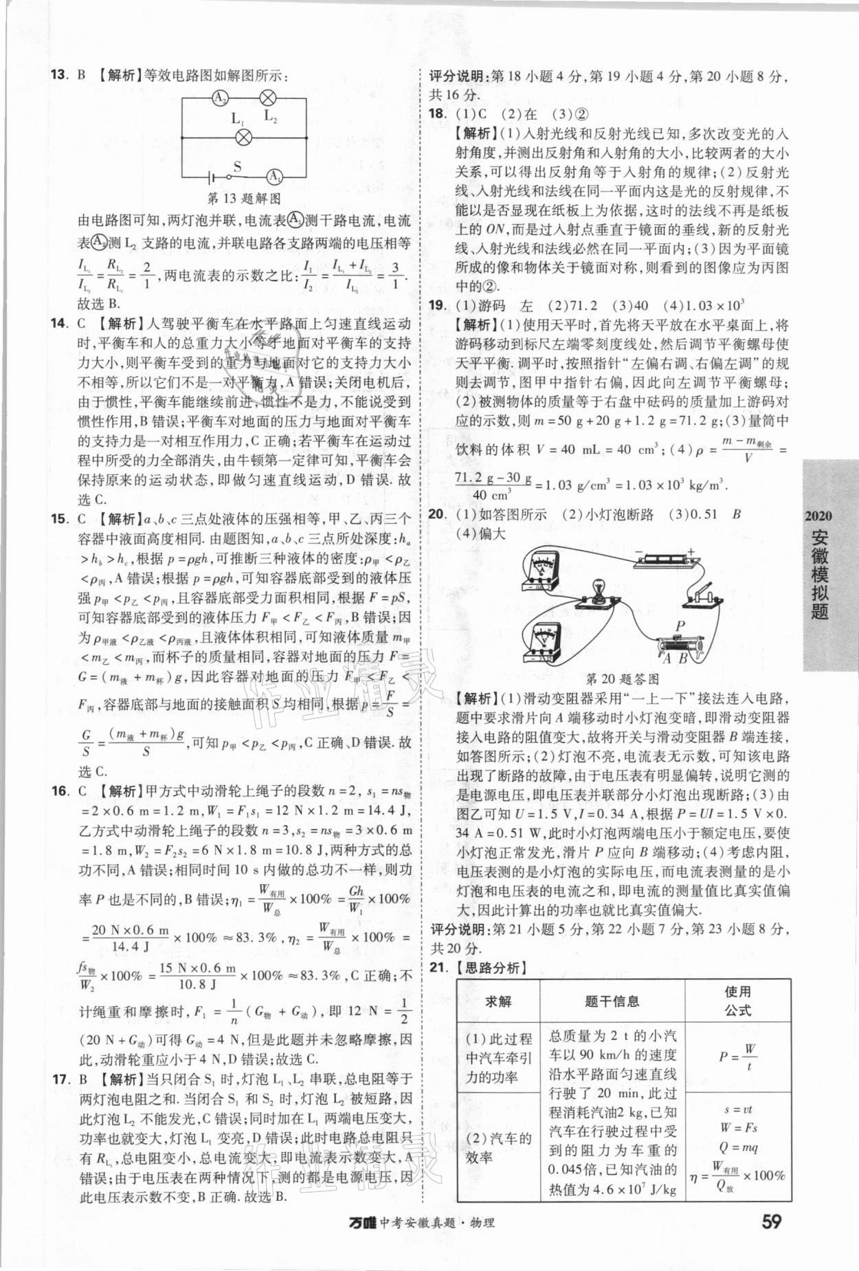 2021年万唯中考安徽真题物理