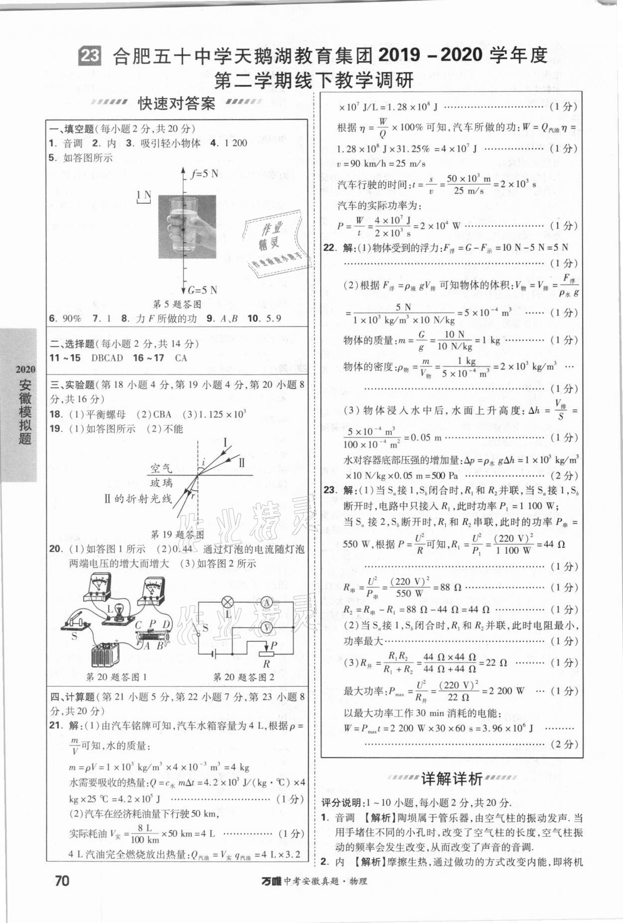 2021年万唯中考安徽真题物理