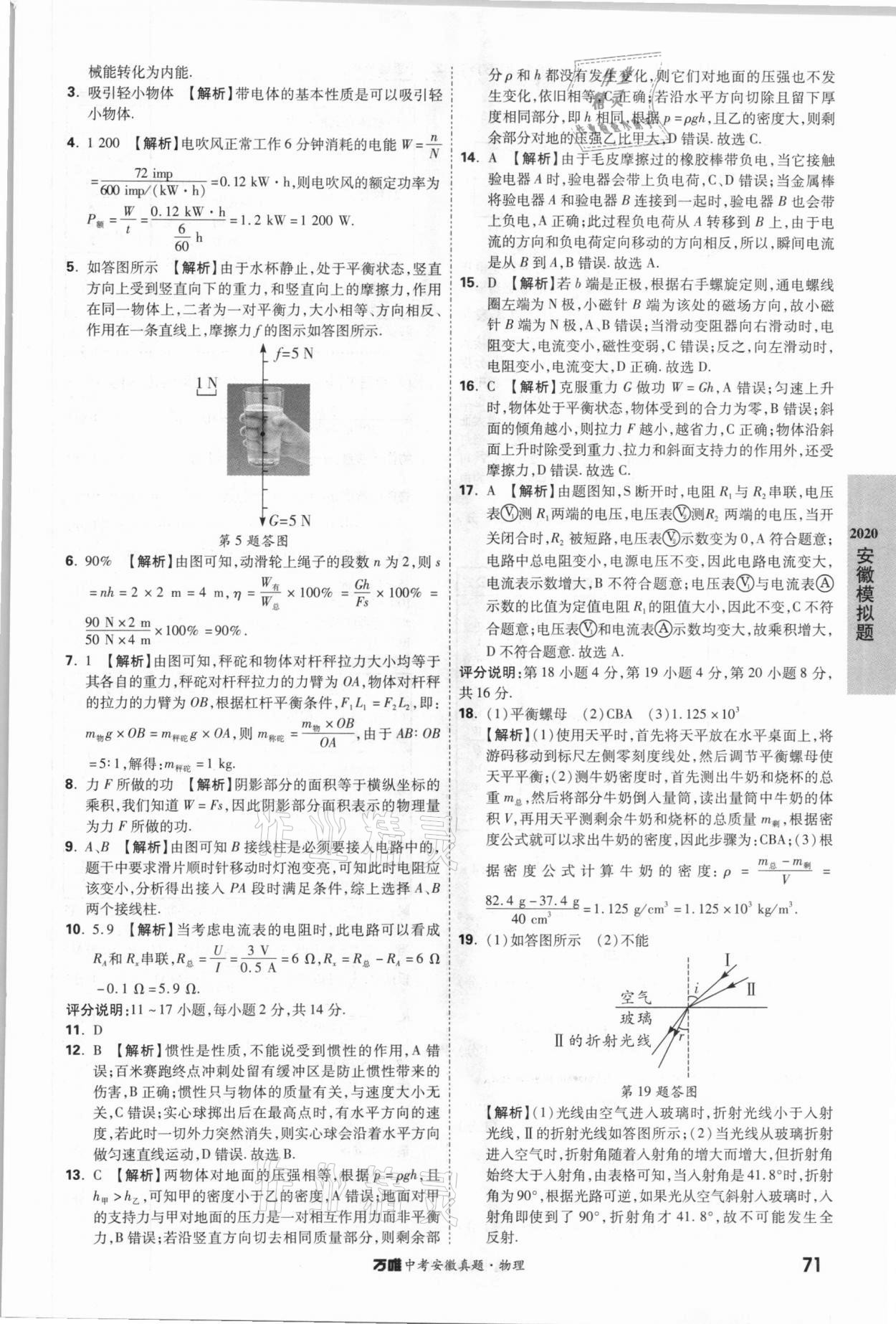 2021年万唯中考安徽真题物理