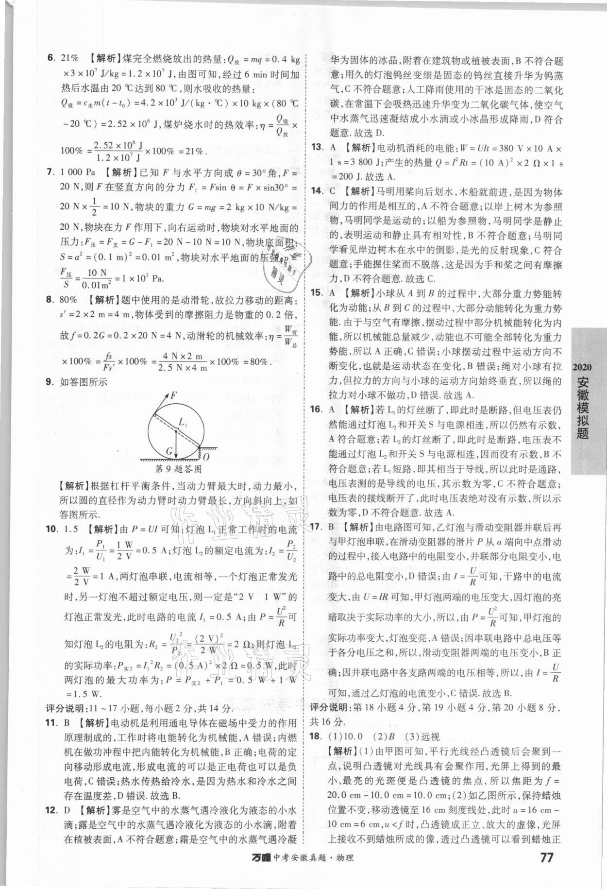 2021年万唯中考安徽真题物理