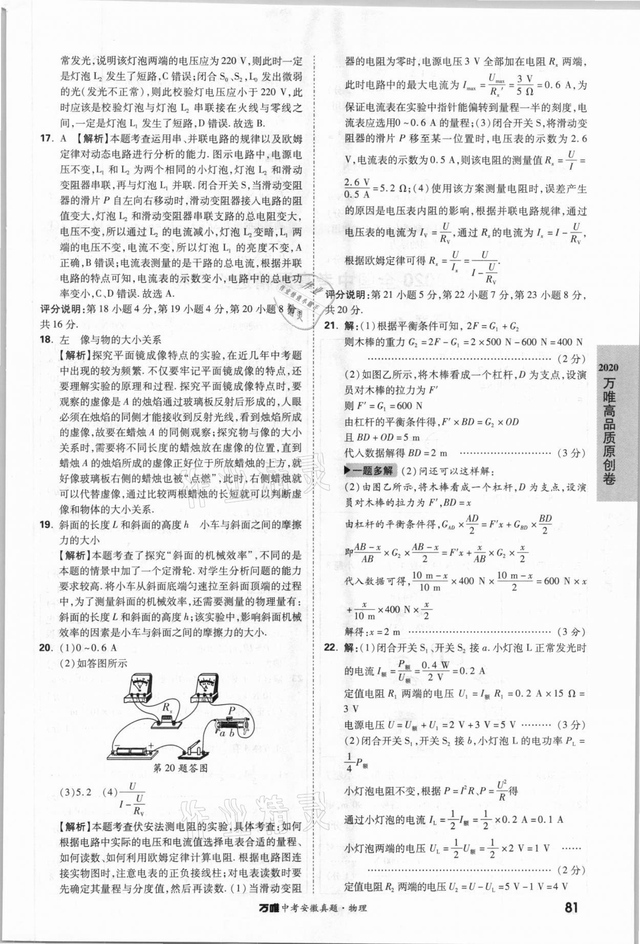 2021年万唯中考安徽真题物理