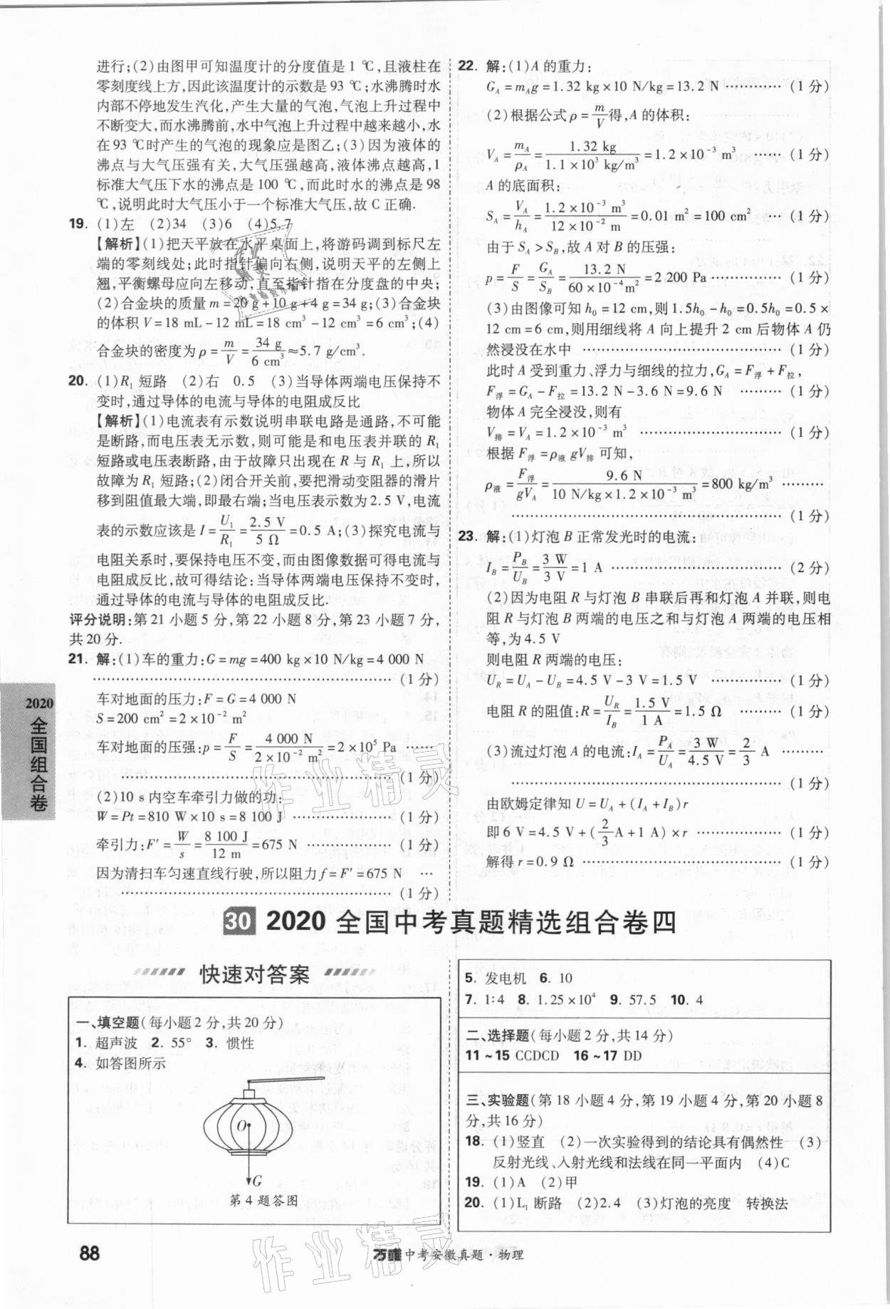 2021年万唯中考安徽真题物理