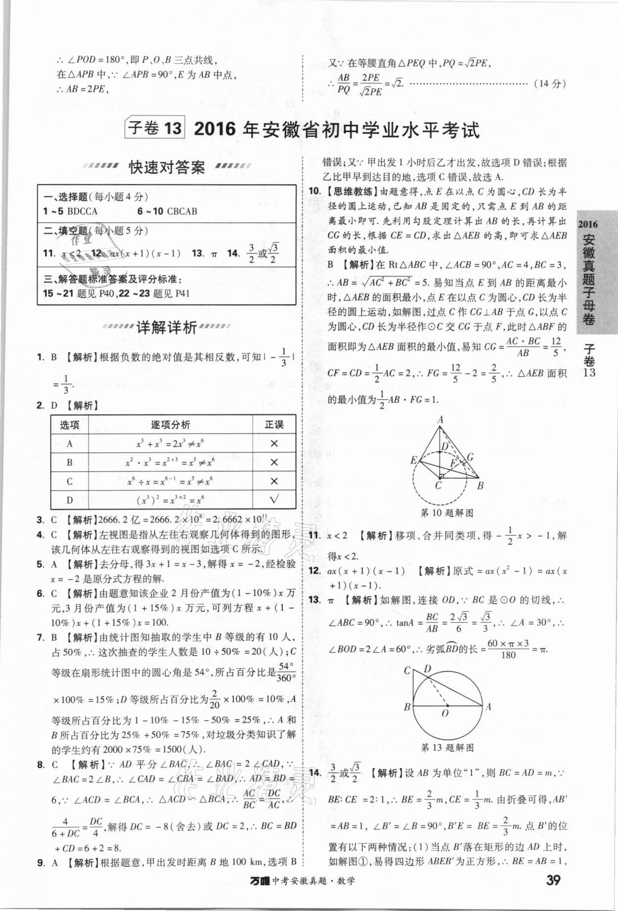 2021年万唯中考安徽真题数学
