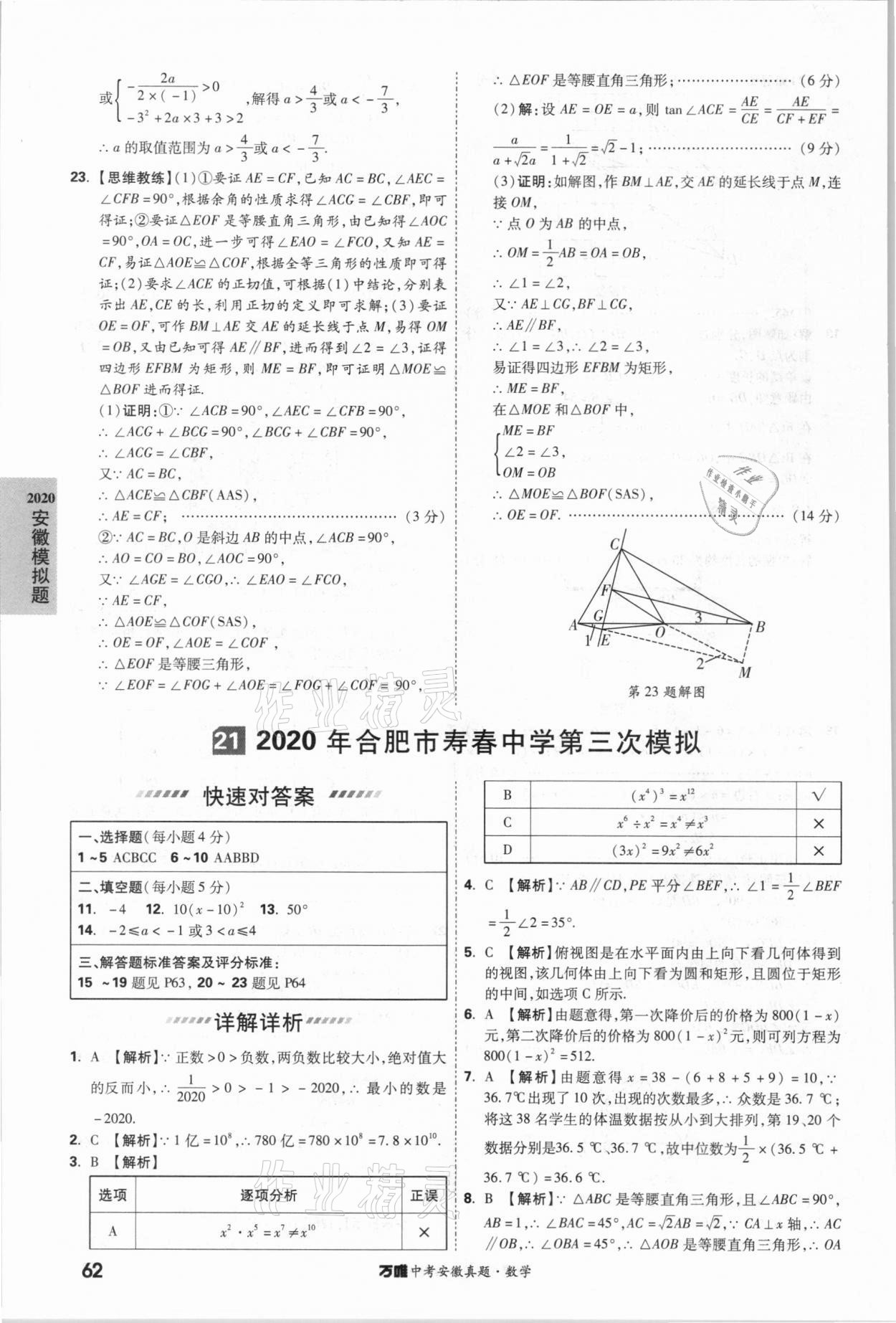 注:目前有些书本章节名称可能整理的还不是很完善,但都是按照顺序排列的,请同学们按照顺序仔细查找。练习册 2021年万唯中考安徽真题数学 答案主要是用来给同学们做完题方便对答案用的,请勿直接抄袭。