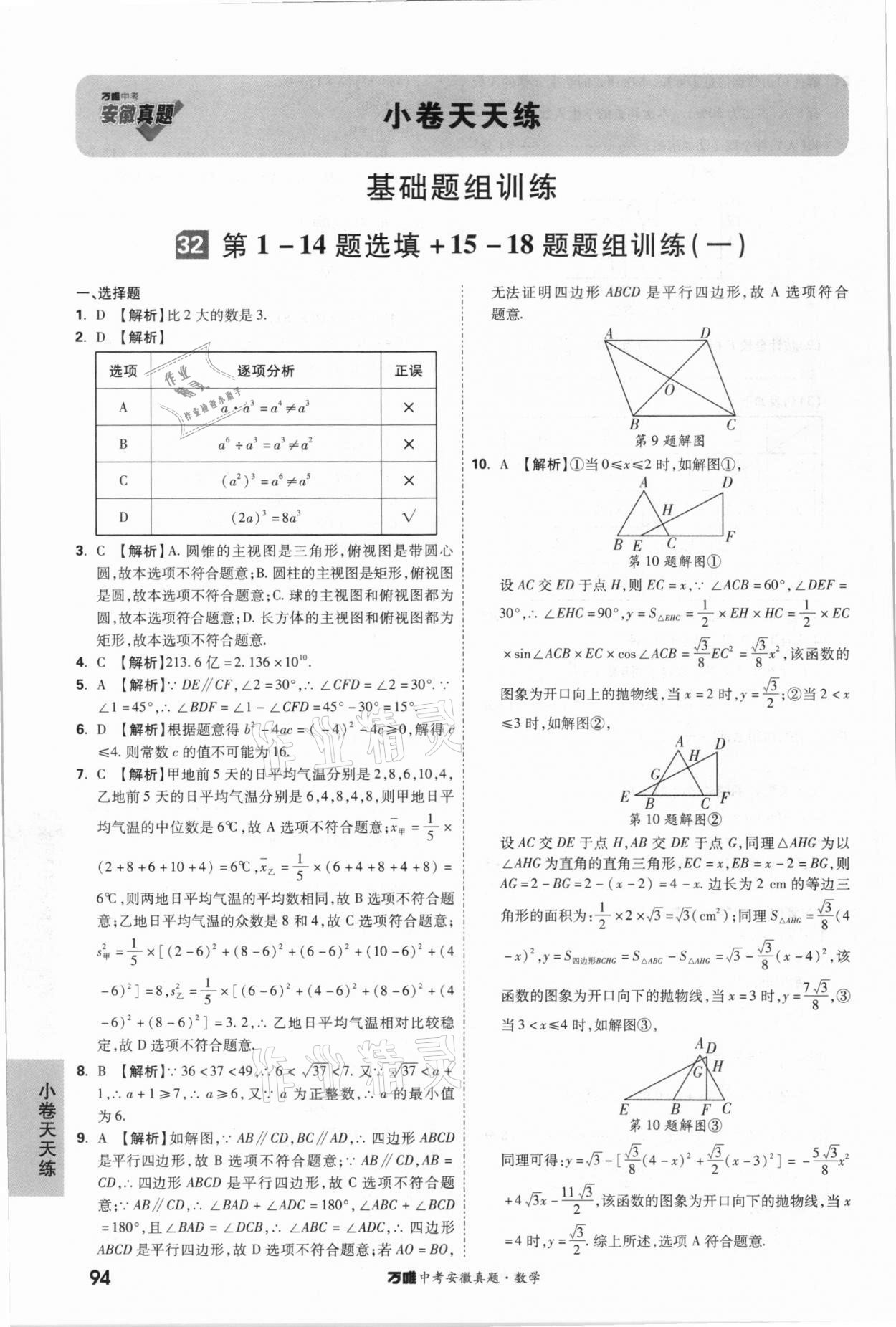 2021年万唯中考安徽真题数学
