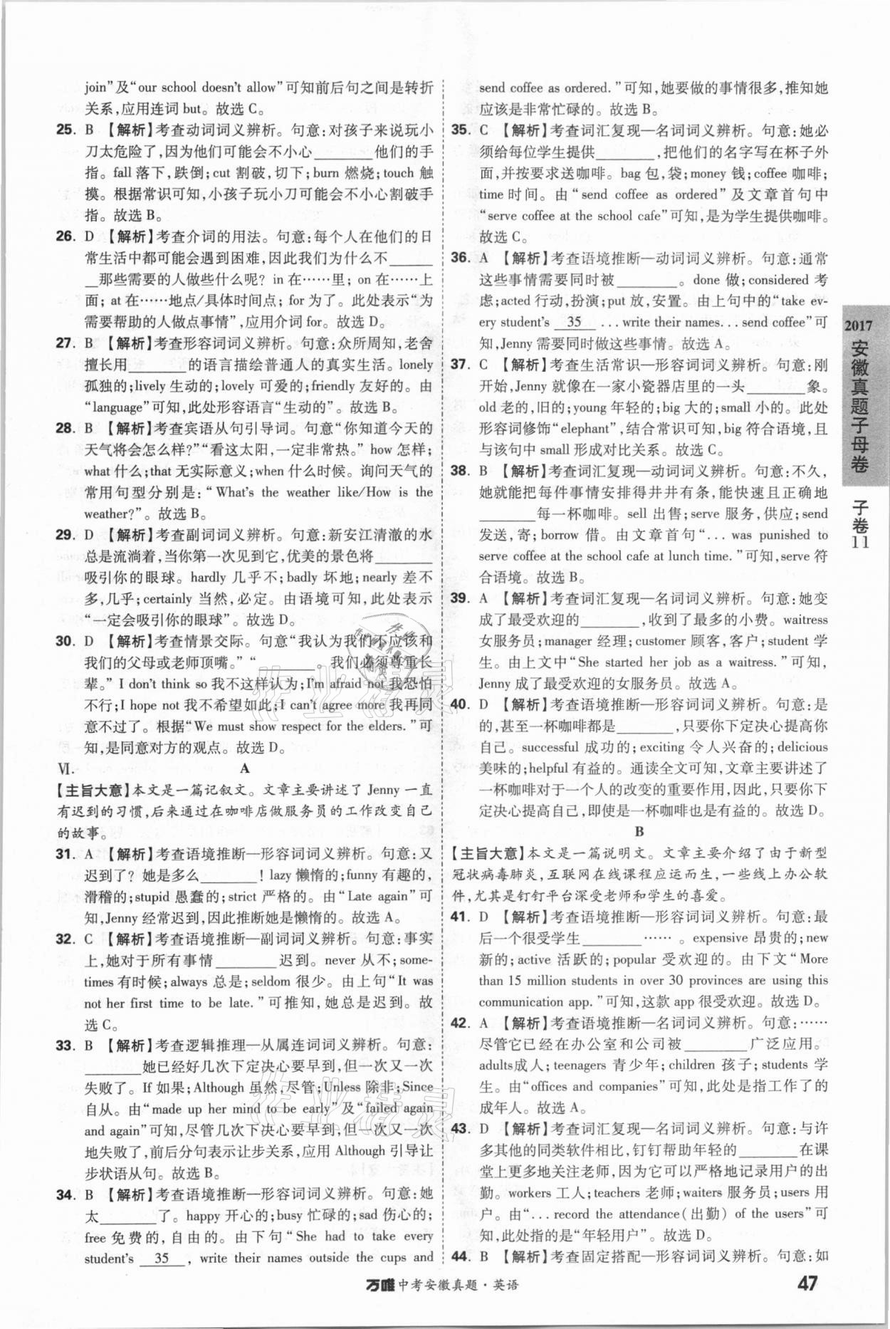2021年万唯中考安徽真题英语