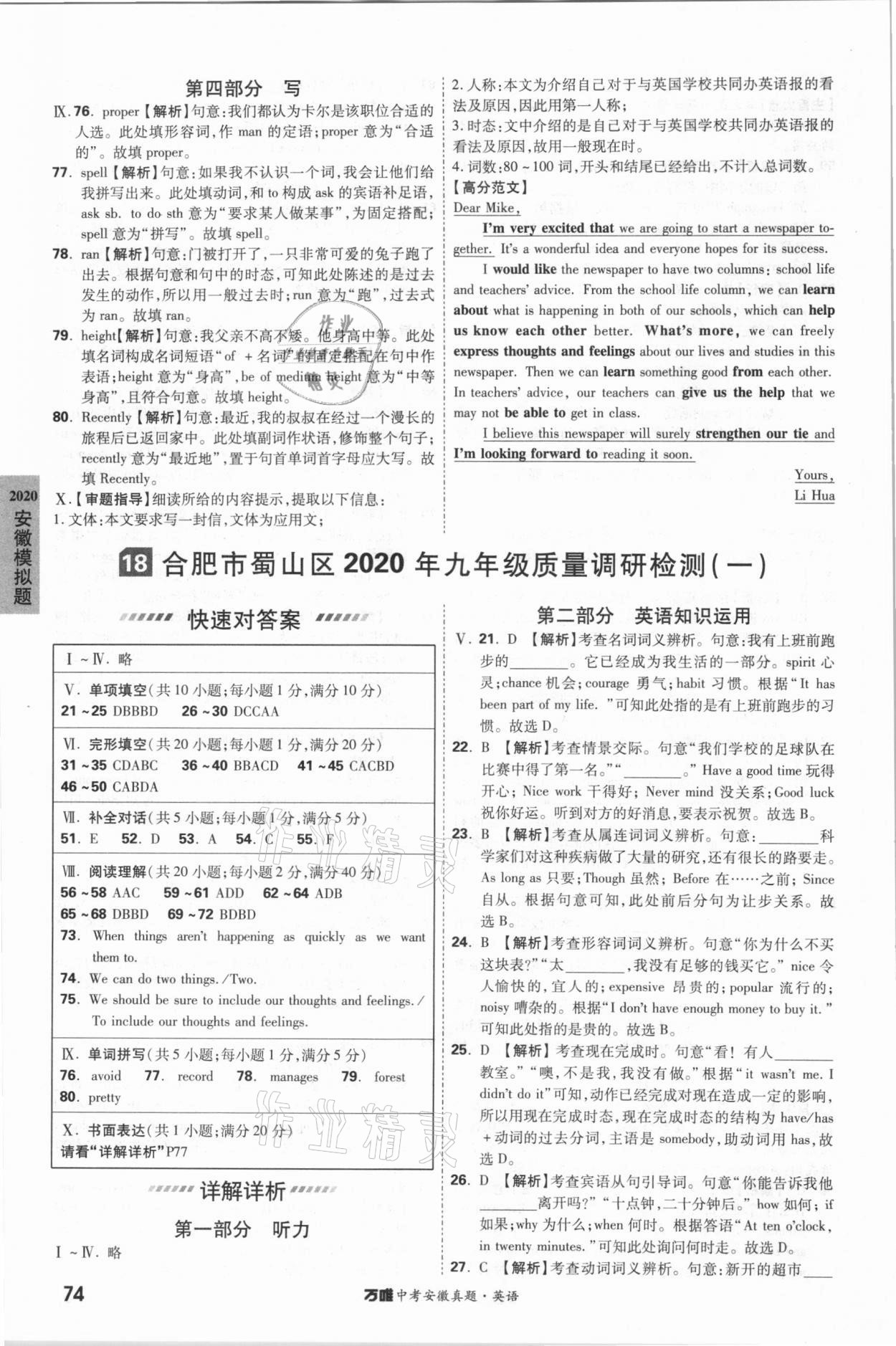 2021年万唯中考安徽真题英语