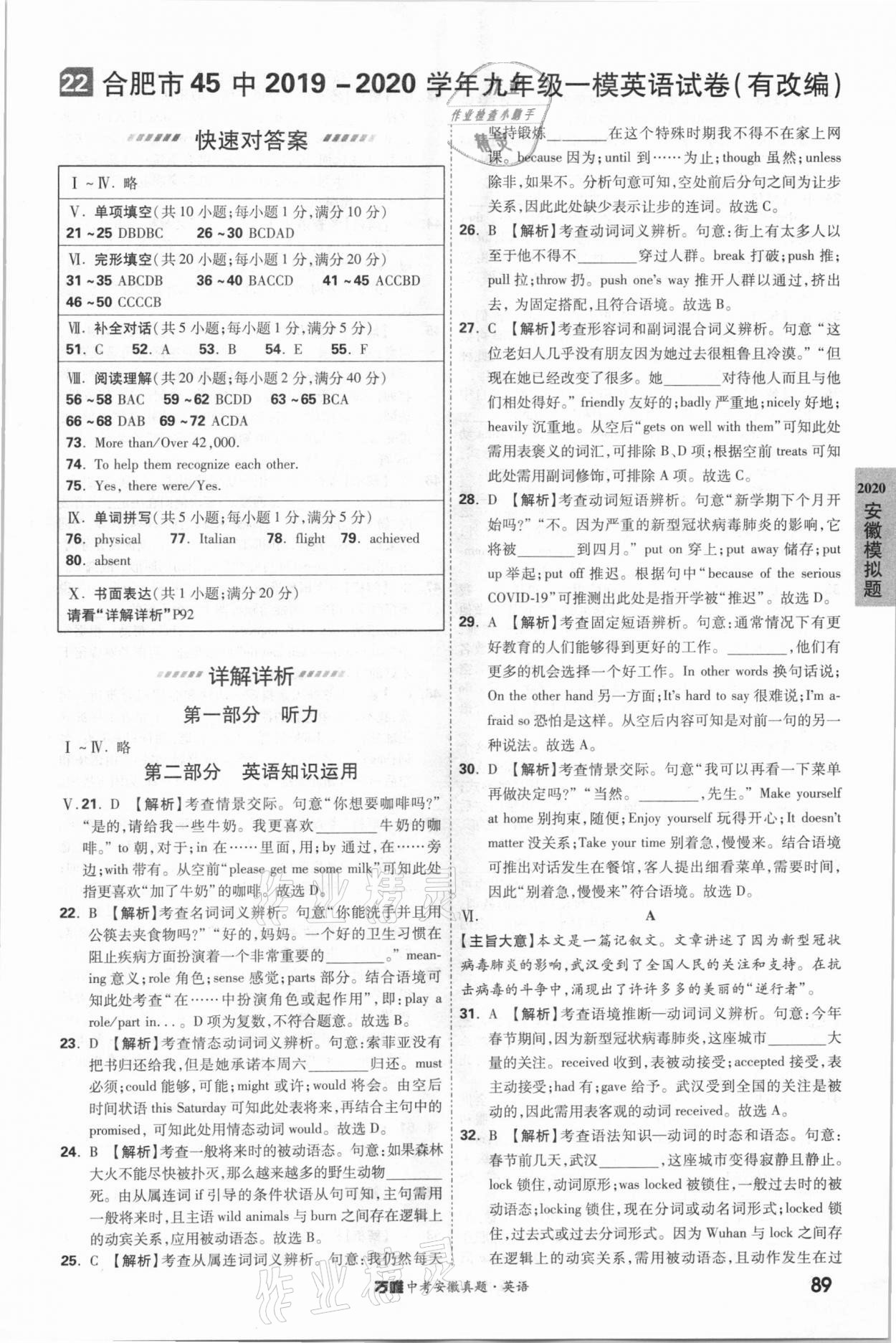 2021年万唯中考安徽真题英语