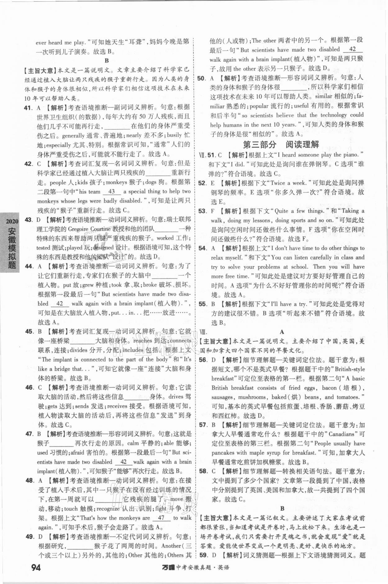 2021年万唯中考安徽真题英语