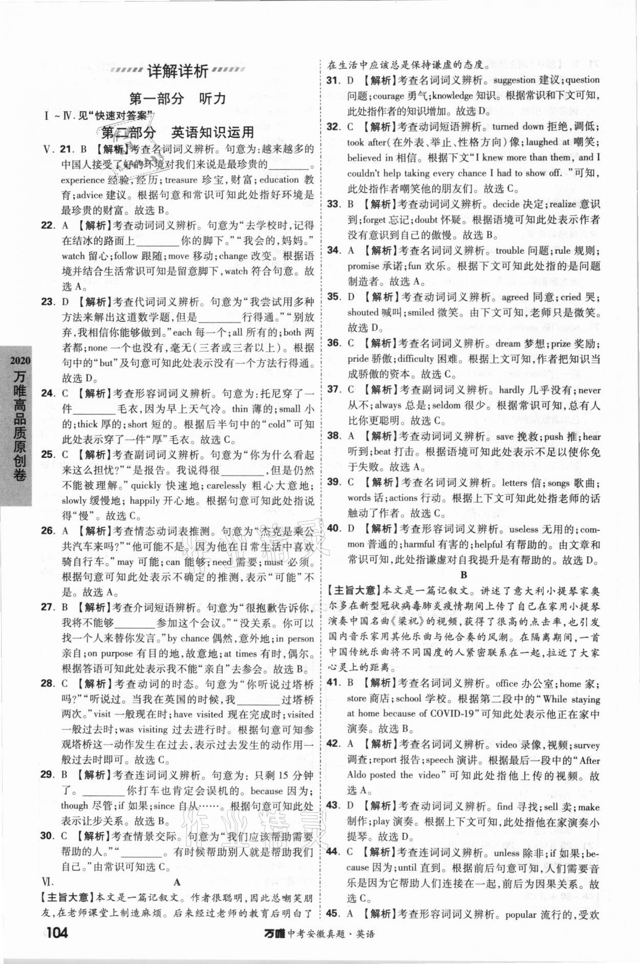 注:目前有些书本章节名称可能整理的还不是很完善,但都是按照顺序排列的,请同学们按照顺序仔细查找。练习册 2021年万唯中考安徽真题英语 答案主要是用来给同学们做完题方便对答案用的,请勿直接抄袭。