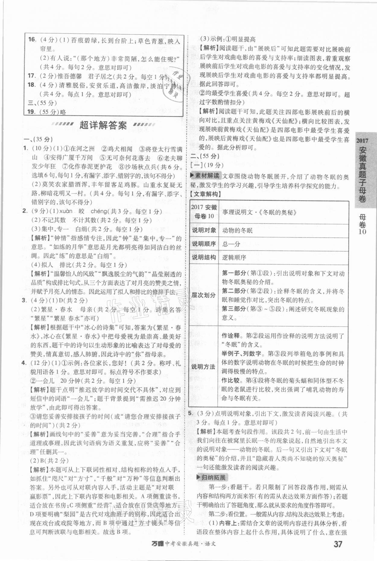 注:目前有些书本章节名称可能整理的还不是很完善,但都是按照顺序排列的,请同学们按照顺序仔细查找。练习册 2021年万唯中考安徽真题语文 答案主要是用来给同学们做完题方便对答案用的,请勿直接抄袭。