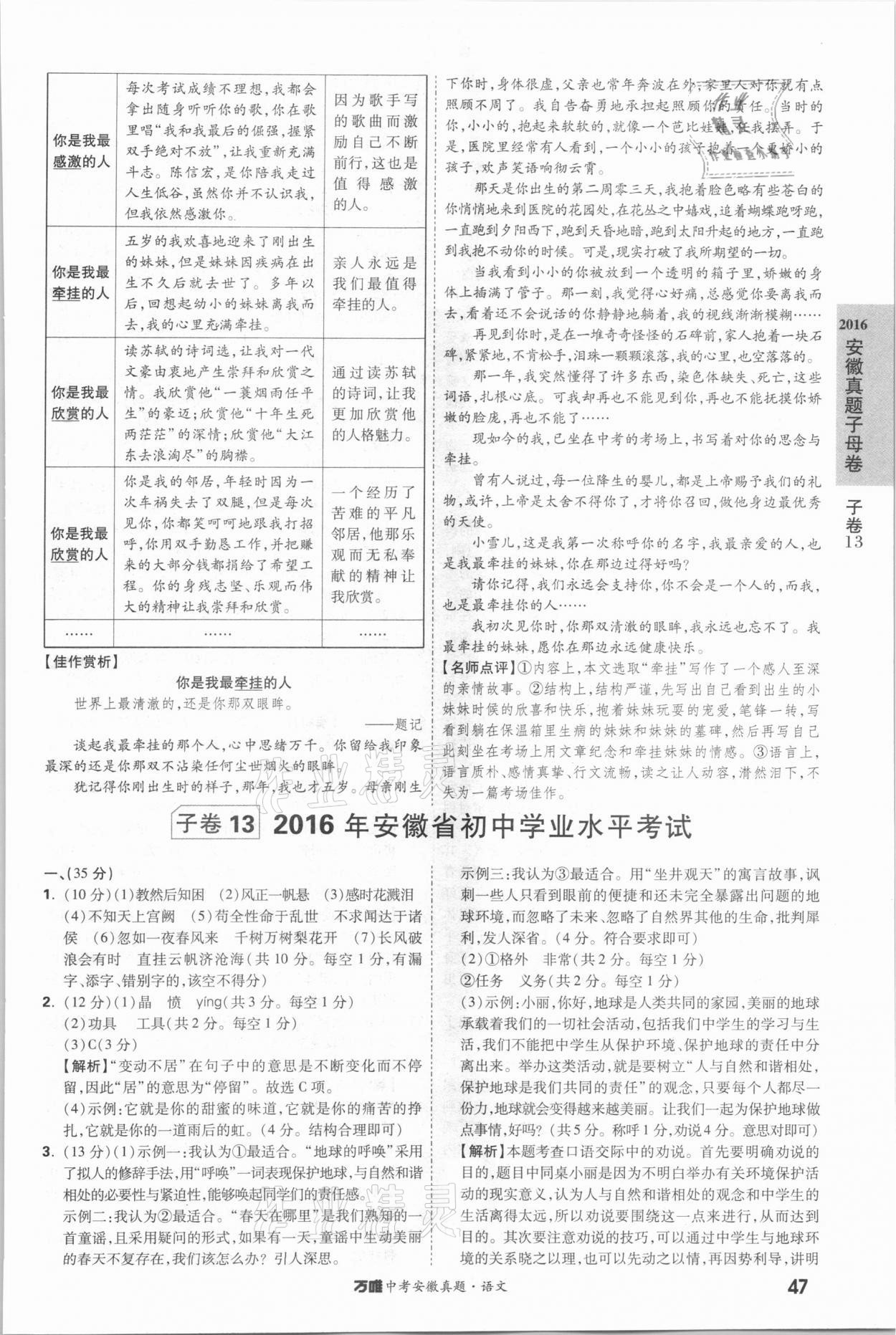 注:目前有些书本章节名称可能整理的还不是很完善,但都是按照顺序排列的,请同学们按照顺序仔细查找。练习册 2021年万唯中考安徽真题语文 答案主要是用来给同学们做完题方便对答案用的,请勿直接抄袭。