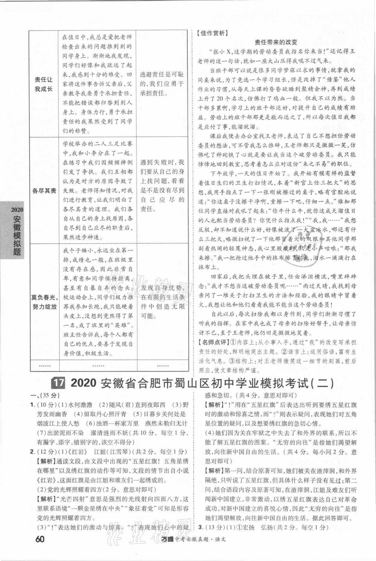 2021年万唯中考安徽真题语文