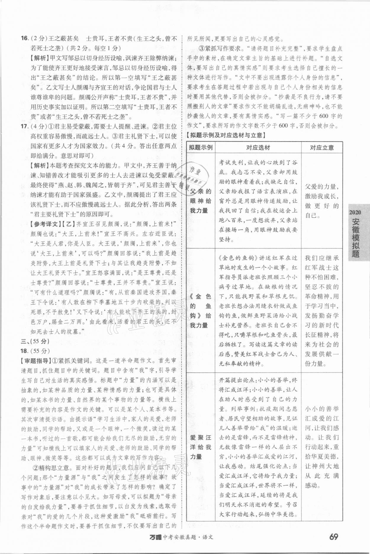 2021年万唯中考安徽真题语文