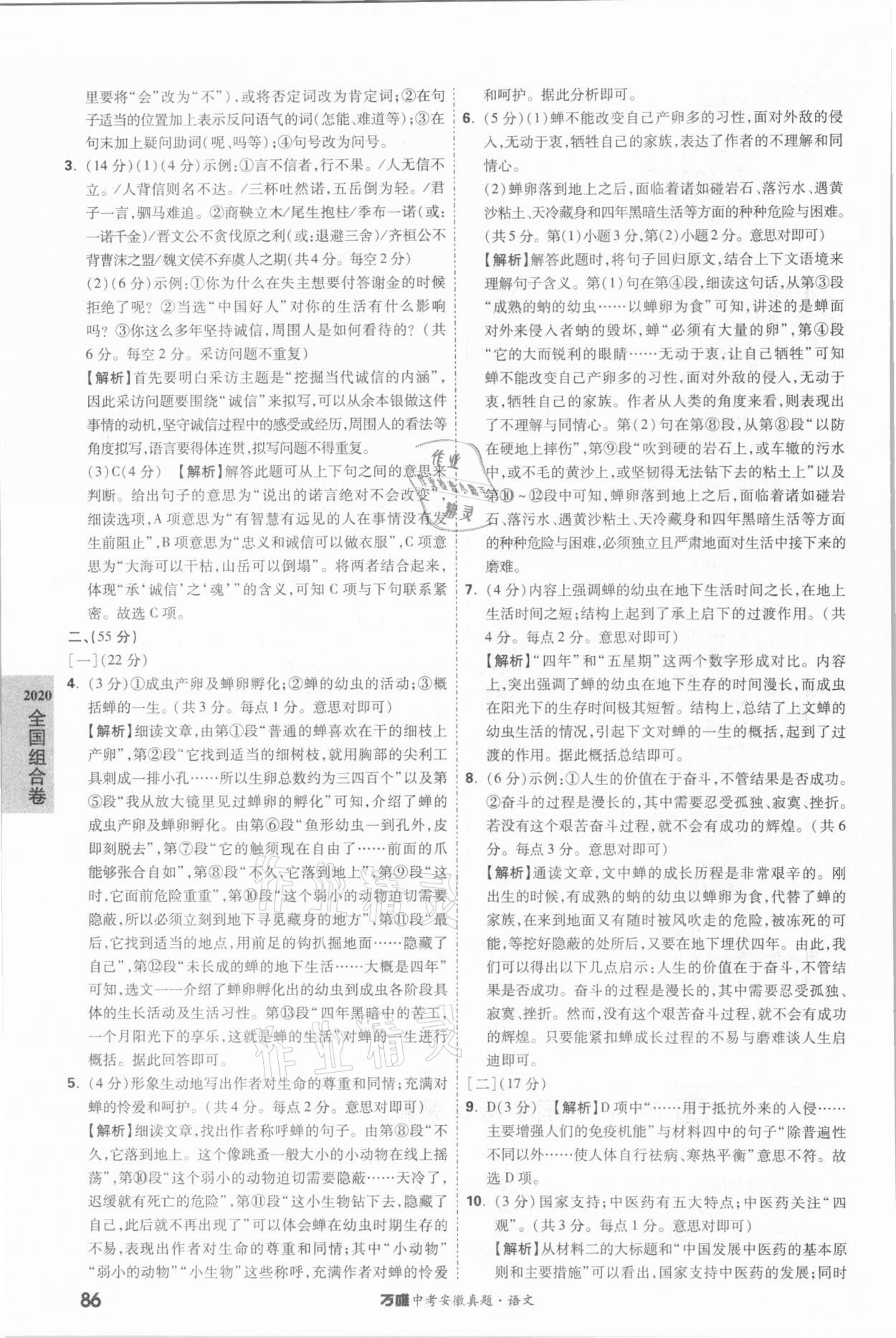 2021年万唯中考安徽真题语文